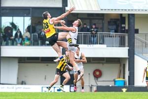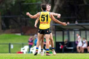 Darby Hipwell’s (23 disposals, one goal) and Hugo Hall-Kahan’s (25 disposals, one goal) clean play in unforgiving conditions was critically important in the final term to hold Southport goalless, while Olli Hotton’s match-high seven tackles ensured the ball remained locked in our forward half.