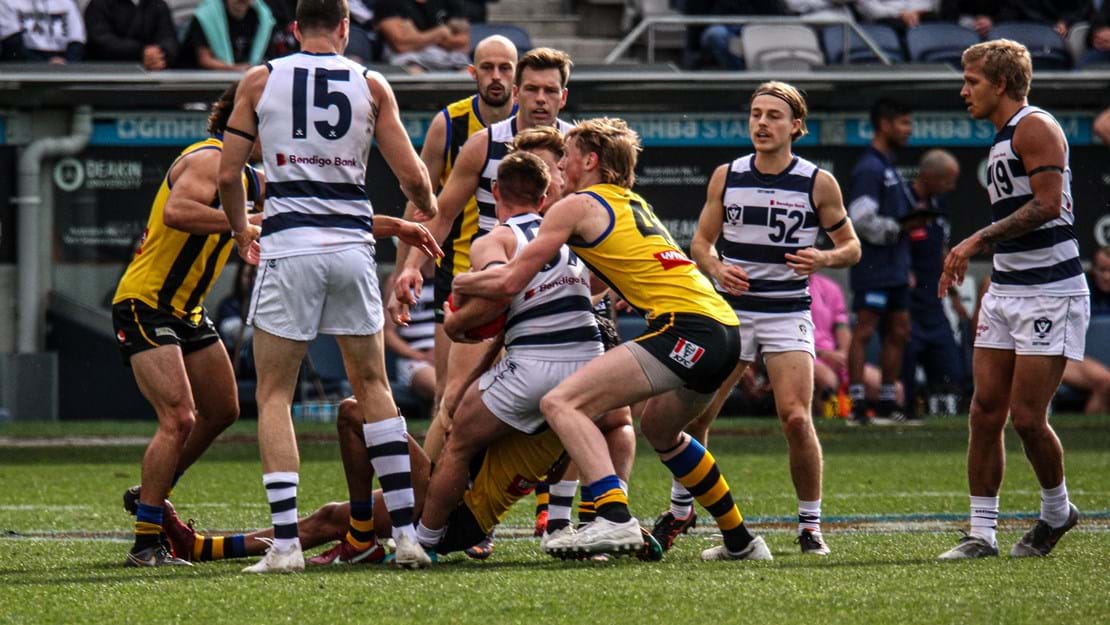 Mitch Riordan continued his solid season in the midfield, finishing the game with 19 disposals and four clearances. Oli Lowe continued his strong end to the season, kicking two goals from just nine disposals.