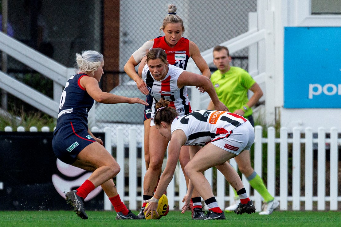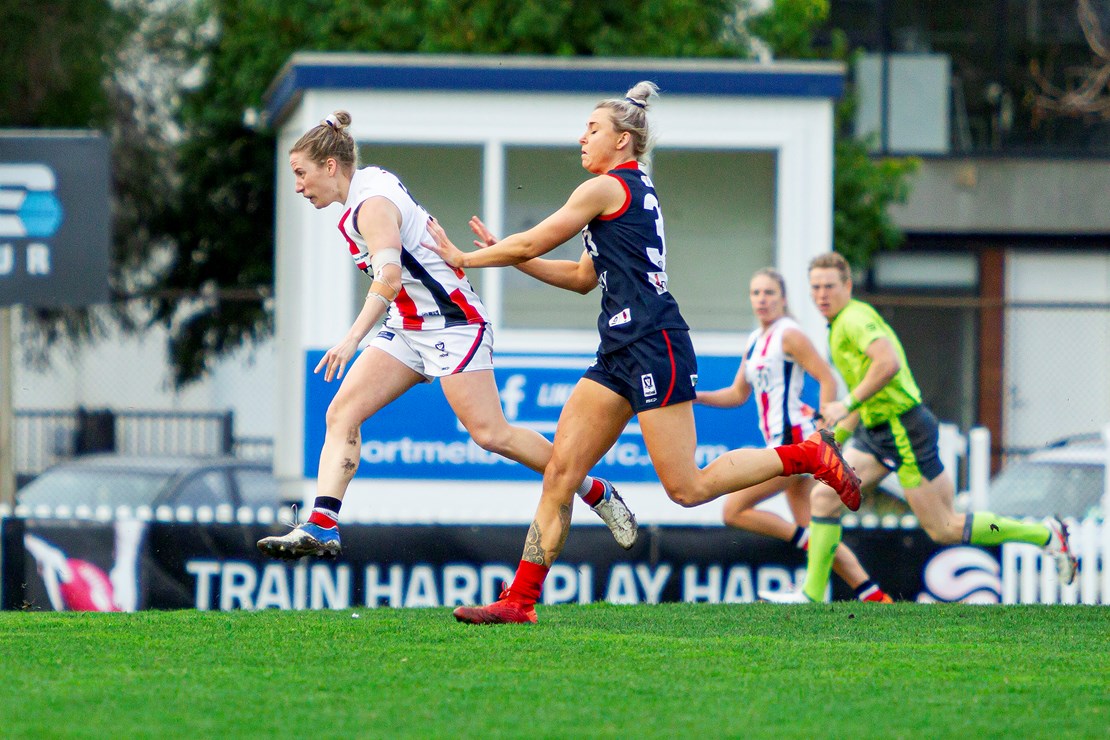Hannah Stuart continued to dominate in the midfield, getting 20 disposals, nine tackles and an equal game-high seven clearances on the day.