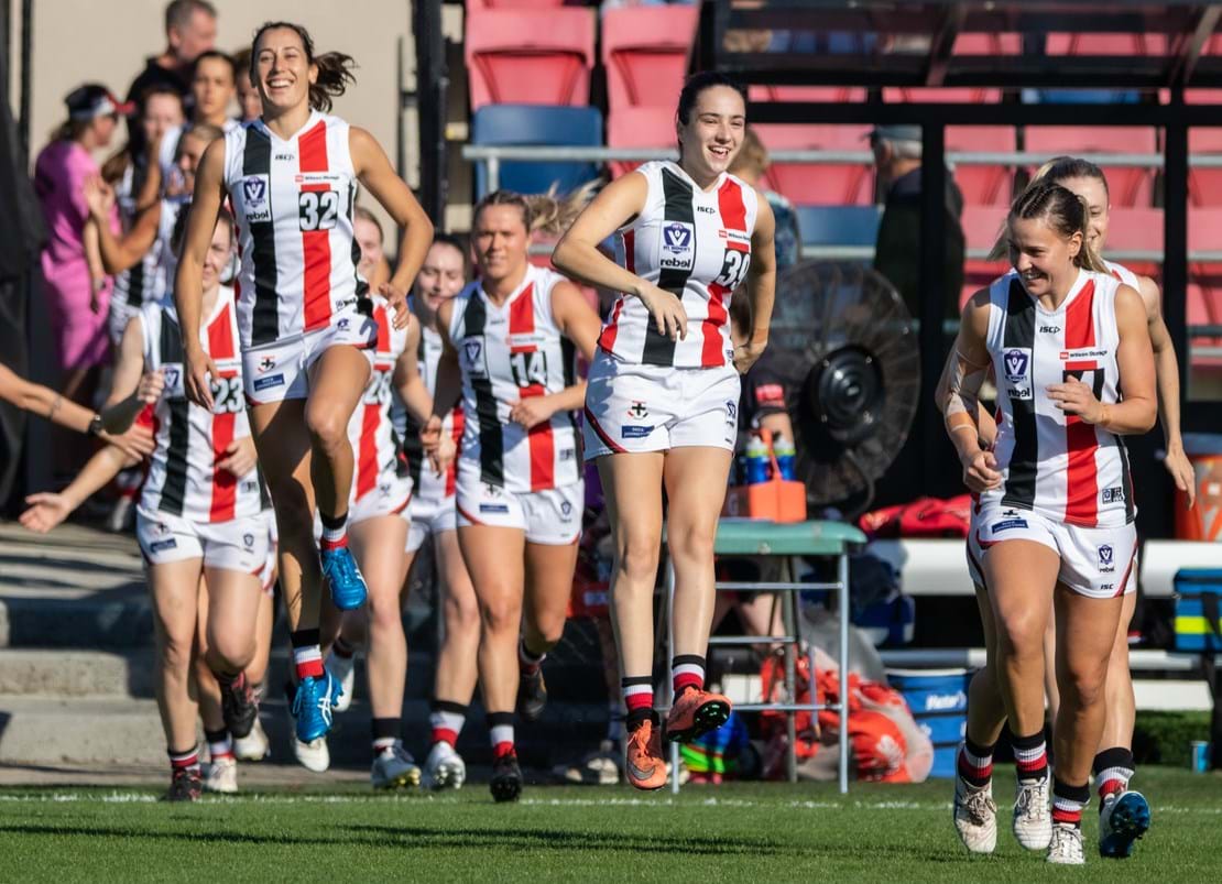 The Demons then kicked 3 unanswered goals, extending their lead to 37 points. A kick forward from Stuart allowed Gabby De Angelis to score just before the half-time siren.