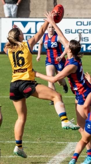 The 2025 season saw Hynes deliver consistency, averaging five tackles and 11 hit outs. In a gruelling draw against Port Melbourne in Round 6, Hynes’ unique role as a dual position player was on show with her eight tackles and 27 hit outs.