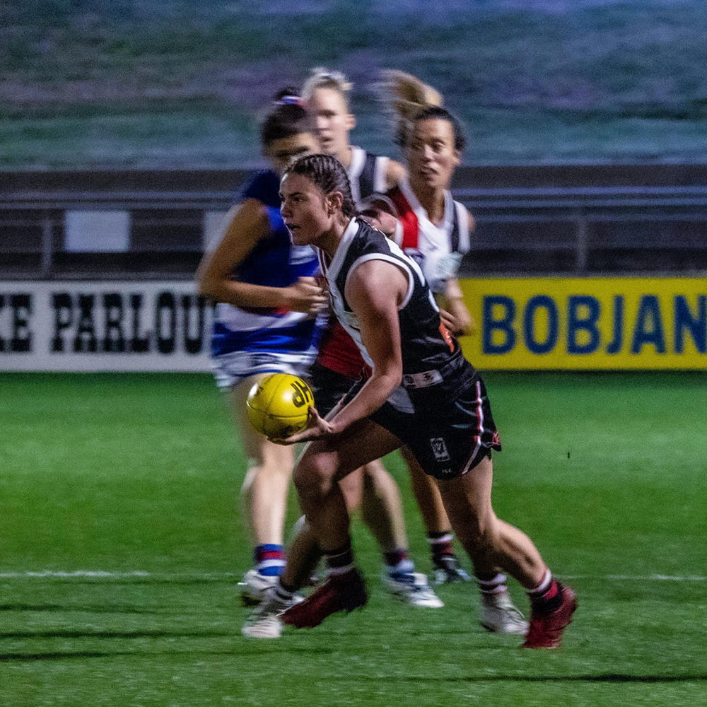 Melanie Bertuna and Hannah Stuart started to get involved around the stoppages, whilst Tayla Kearns and Tara Bohanna were providing the targets up forward, but the Saints couldn’t find an avenue to goal.