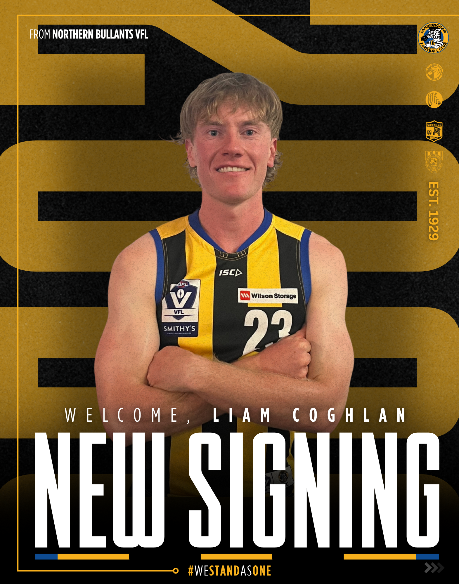 Coghlan joins the Zebs from the Northern Bullants, where he played 16 VFL games in 2025 and finished seventh in their Best & Fairest. Prior to his time at the Bullants, he spent a year at Port Melbourne in 2024, playing nine games, and two years at Box Hill from 2022-23, where he played a total of 16 games.