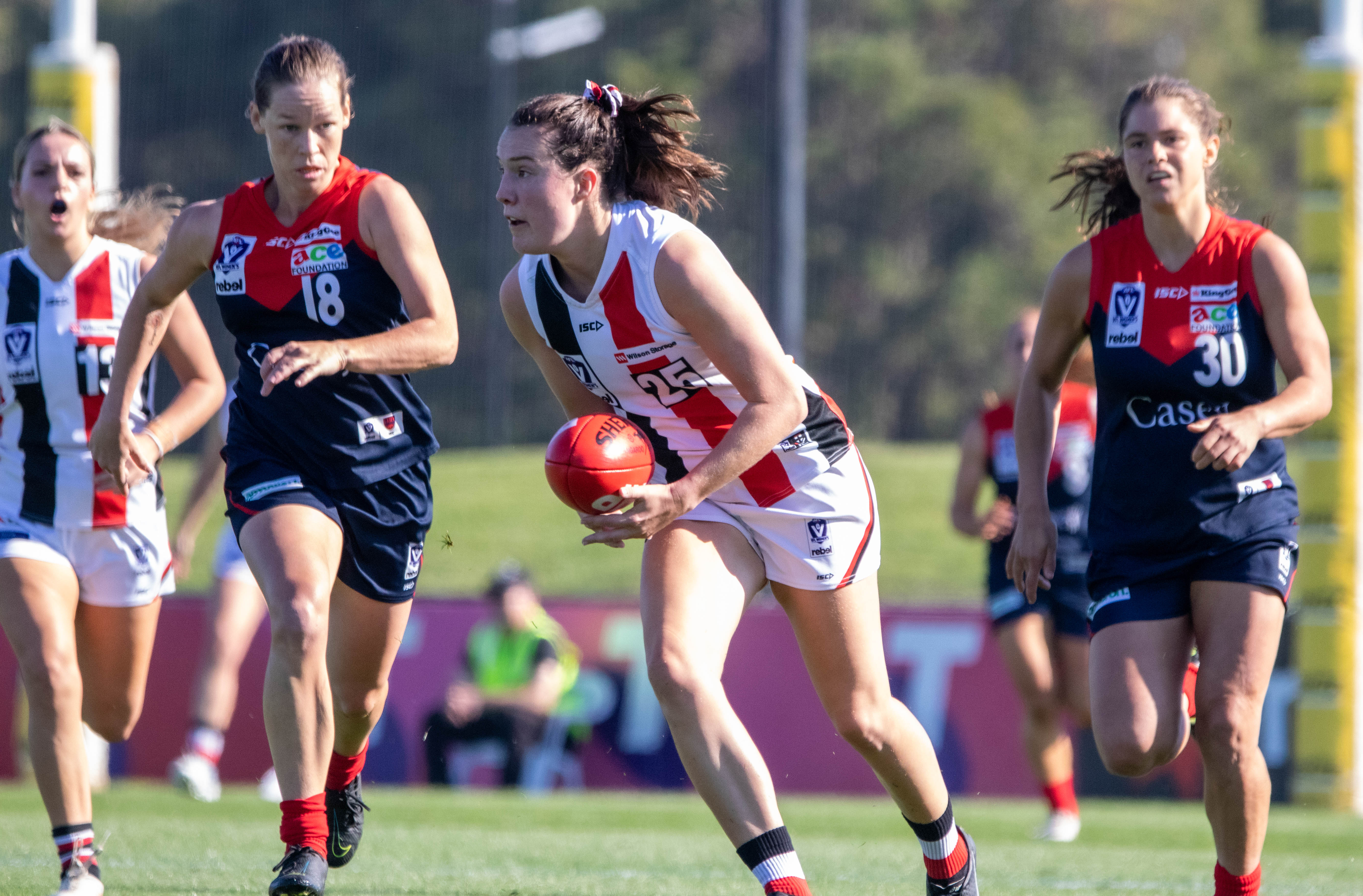 Five Sainters – Ebony Nixon, Georgia McLean, Tayla Kearns, Ali Hynes and Bec Neaves re-commit, kicking off our VFLW squad ahead of the 2023 season.