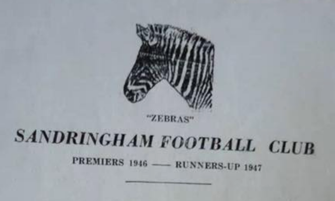 It was not until 1934 that the Sandringham Football Club officially adopted a mascot. The Zebra, a name coined by the “Sun News Pictorial”.