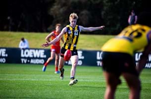 Our defence stood tall as well, with Angus McLennan taking six marks down back and using the ball at 100% efficiency. Ethan Williams had another fine performance from half back, winning the ball 21 times and coming away with six clearances. Billy Richardson found himself in defence at times, but the utility also pushed up the field and kicked an equal game-high three goals, which helped us build momentum throughout the first half.