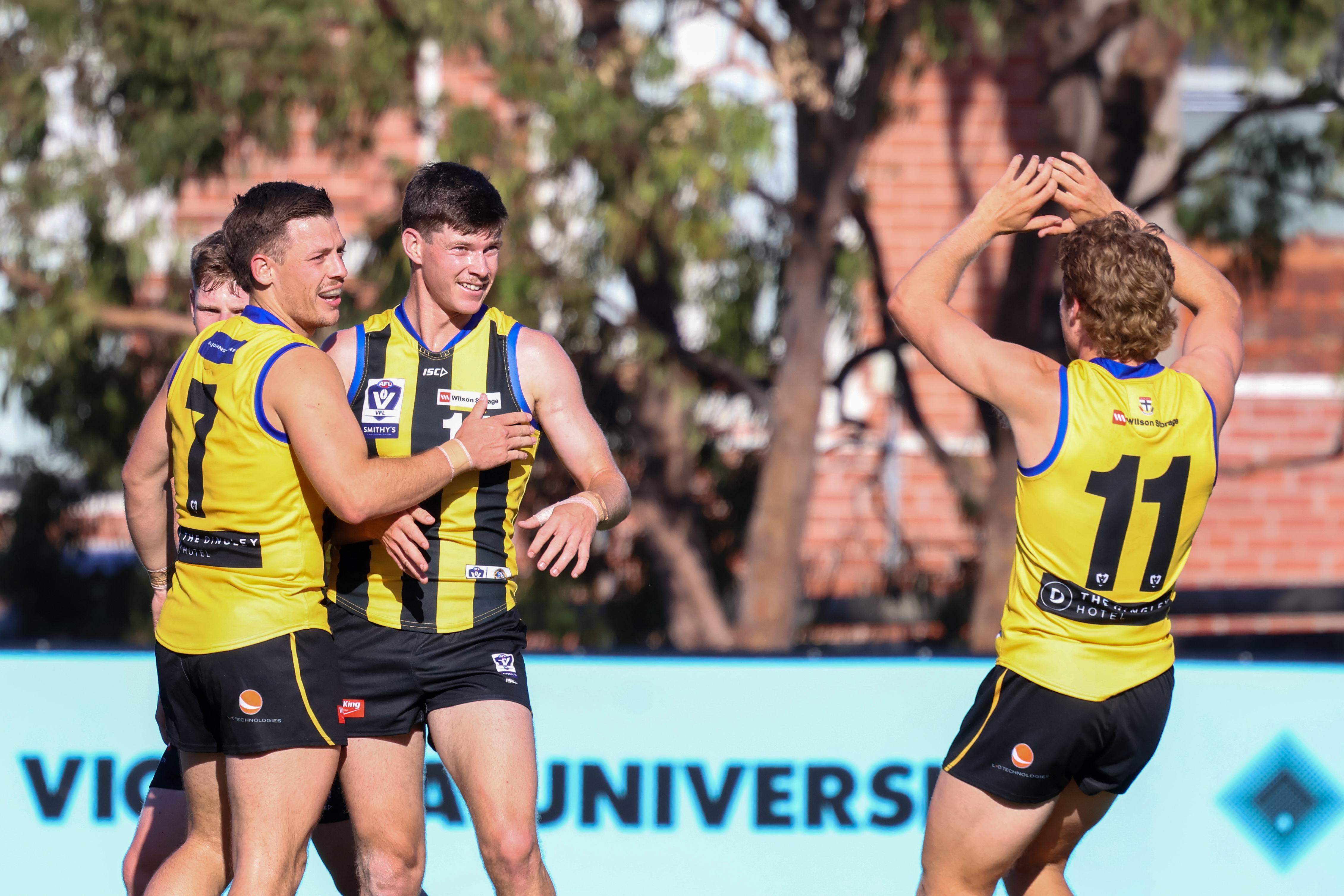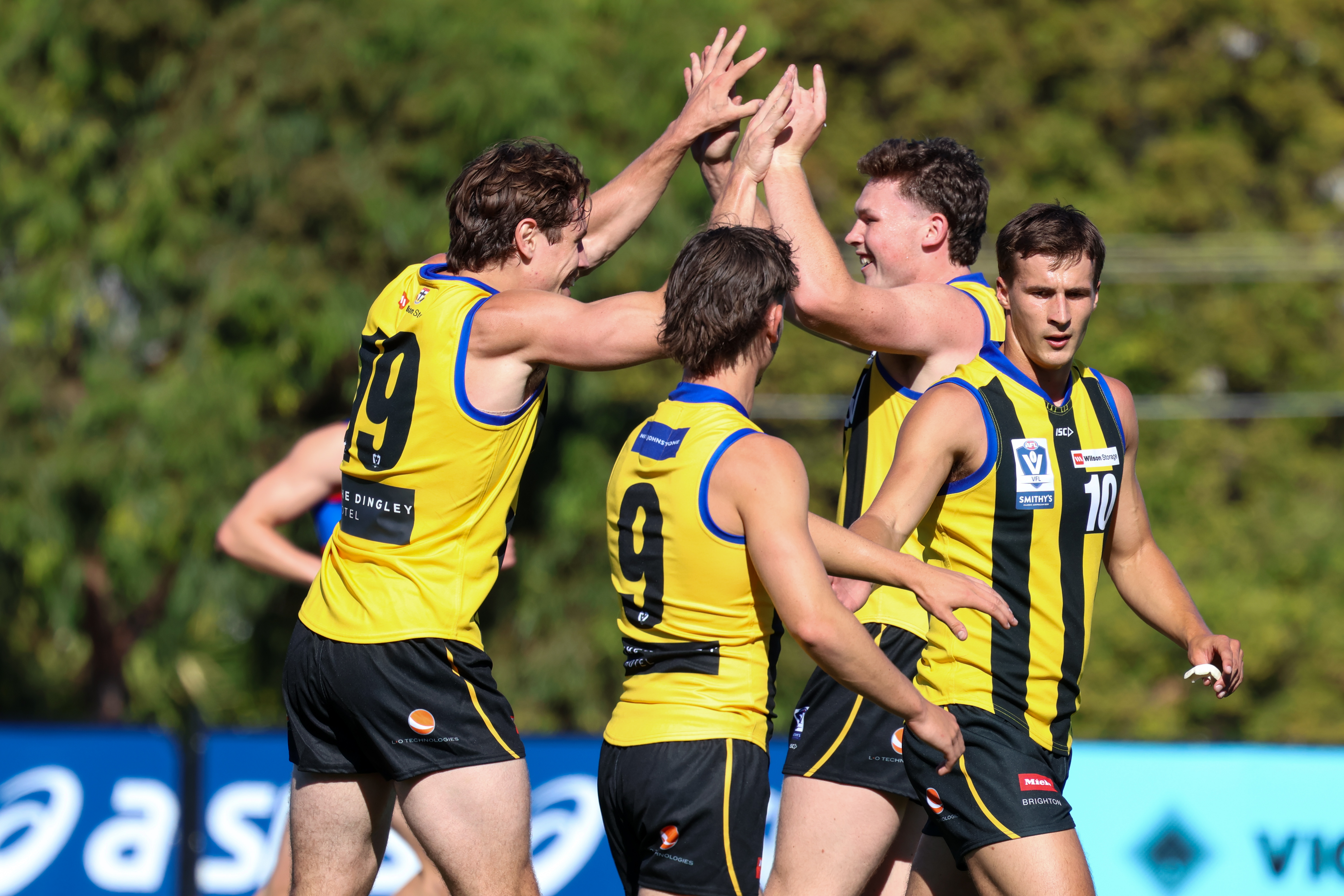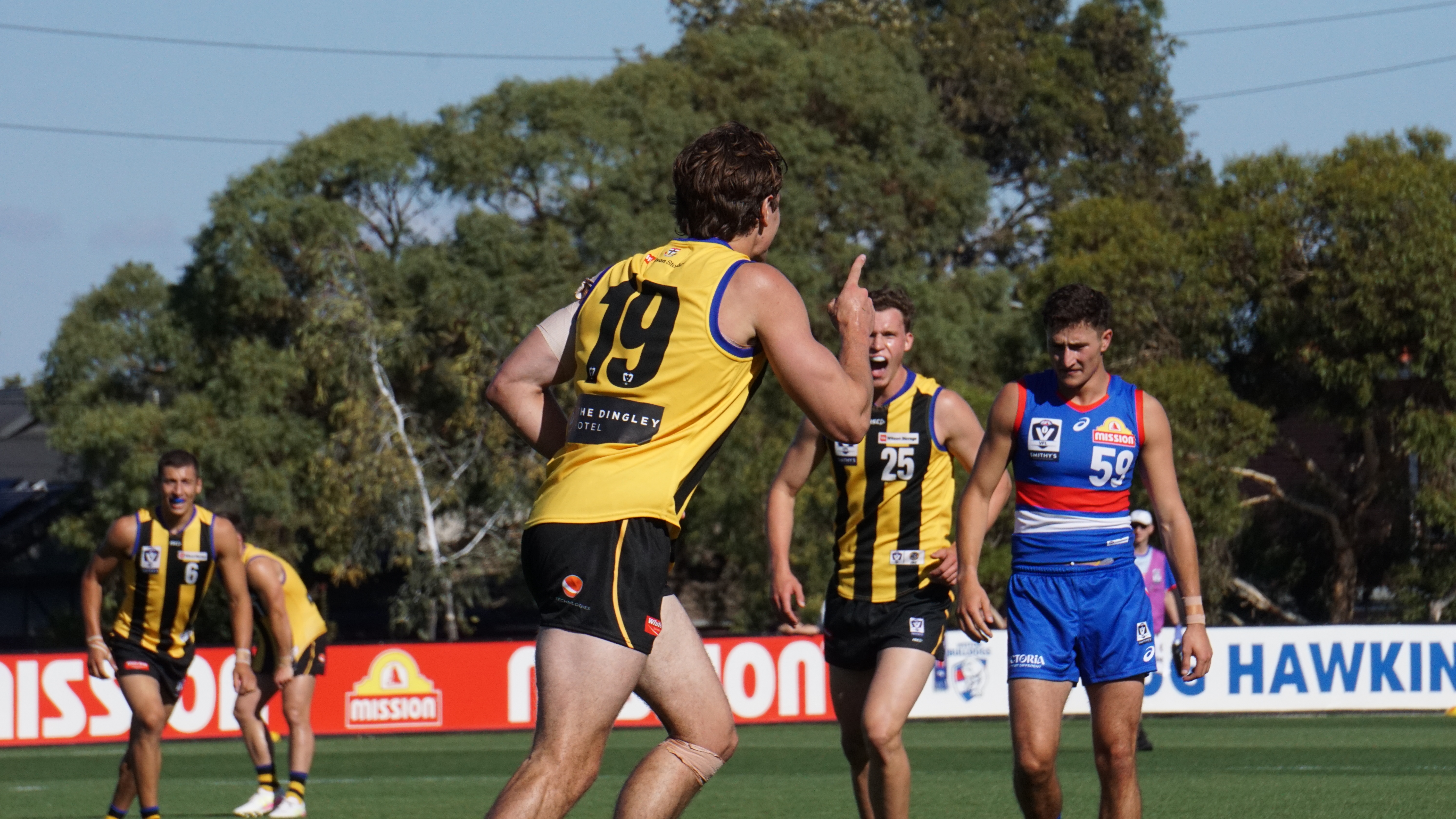 Kynan Brown and Lachie Riley had the ball on a string in the wing, proving to be the dogged engine room when our defenders won the contest. It wasn’t until late in the first quarter when Footscray started to gain some momentum with three goals in-a-row to take the lead by 20 points.