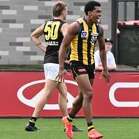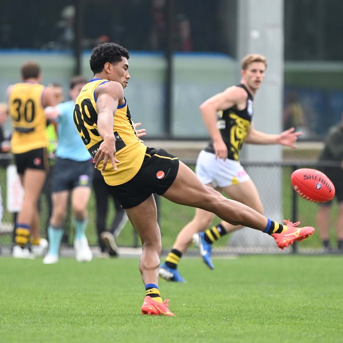 The Zebras were efficient early, converting three of their first four inside 50 entries into goals, with Zaine Cordy nailing a set shot to extend the lead. The Tigers hit back with a goal of their own, before Liam Henry showcased his range, launching a long set shot from outside 50 that sailed through for a goal. Jonah Campigli and Faimalo applied intense defensive pressure, each laying huge tackles to win holding-the-ball free kicks, but Richmond managed to keep themselves in touch with another goal late in the quarter. At the first break, Sandringham held a slim lead, 4.0 (24) to 3.3 (21).