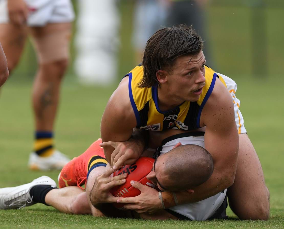 Mason Hawkins (17 disposals, 2 tackles, 11 hitouts), Tom Blamires (8 disposals, 2 marks, 2 tackles) , Jordy Segar (4 disposals, 1 tackle), Isaac Wallace (7 disposals, 4 kicks) and Noah Gown (1 goal, 2 behinds, 9 disposals) all had solid debuts in the blue, yellow and black.