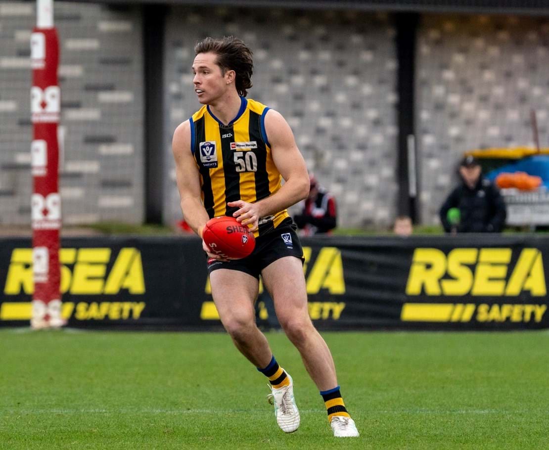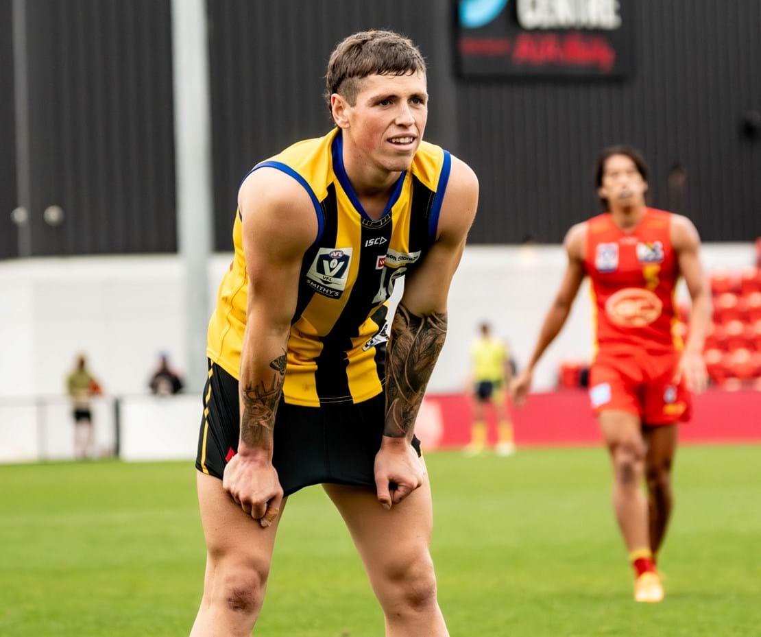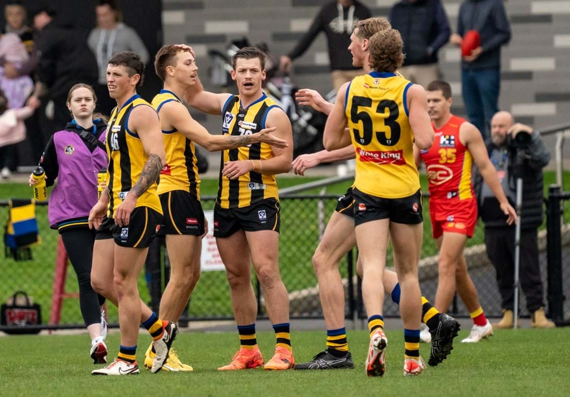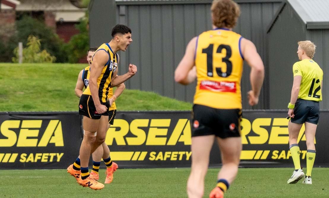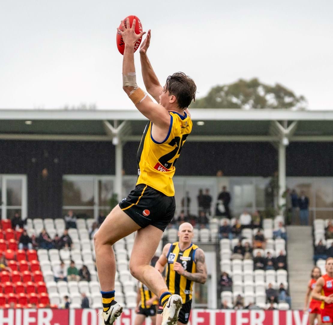 Wet and slippery conditions in the second were ideal for our style of football, as contested bull Mattaes Phillipou sprang into action notching up a game-leading eight tackles. Although the SUNS started to exhibit fluid ball movement from their defensive half, no one could deny the exceptional skill of Collard as he adeptly tapped the ball ahead, veered back inward, and impressively curled in a goal from 35m away. We headed into half-time three-points up.