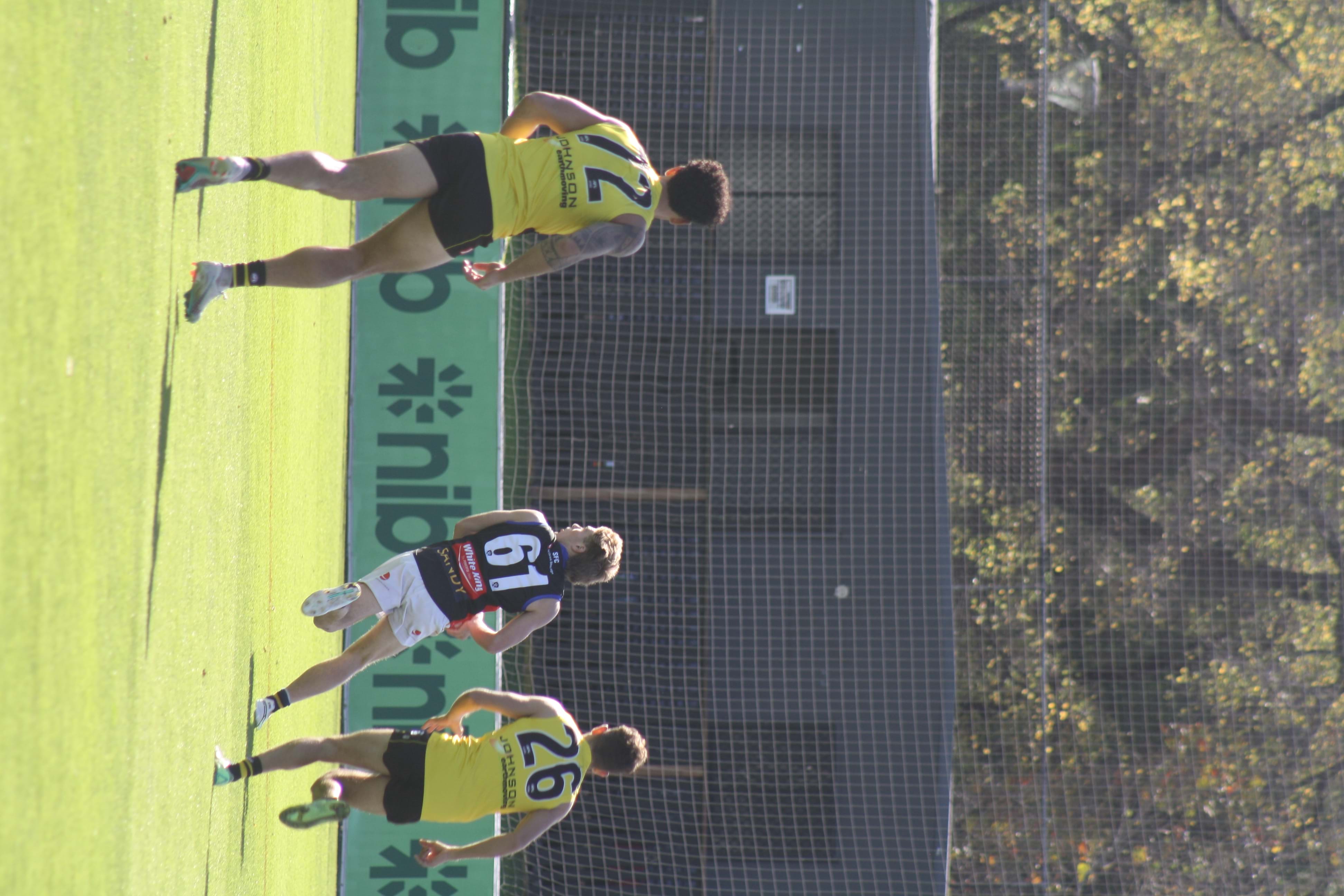 The seven minute mark presented aggressive kicks down the middle on two occasions, backed up in the ninth minute with a chain of play involving Gown and Owens, landing in the hands of Keeler. Registering a behind, the Zebs found themselves only four points down with eleven minutes to play.