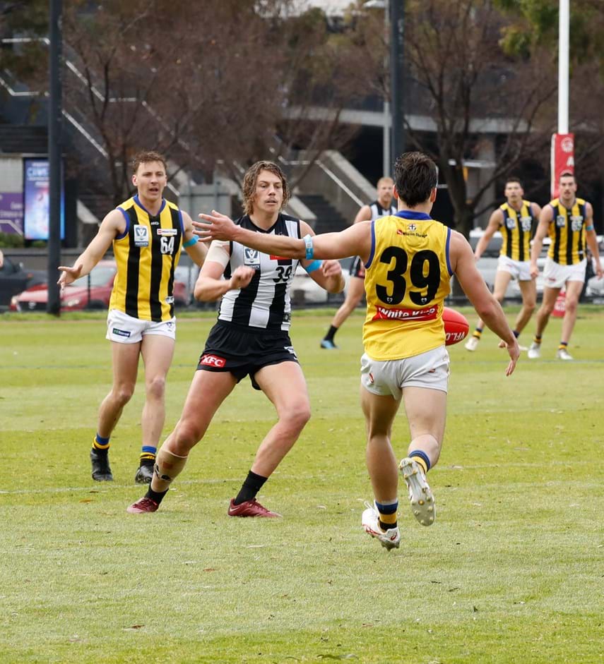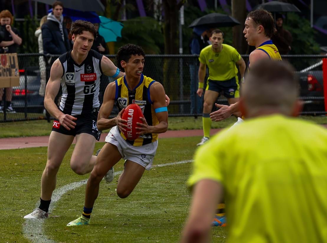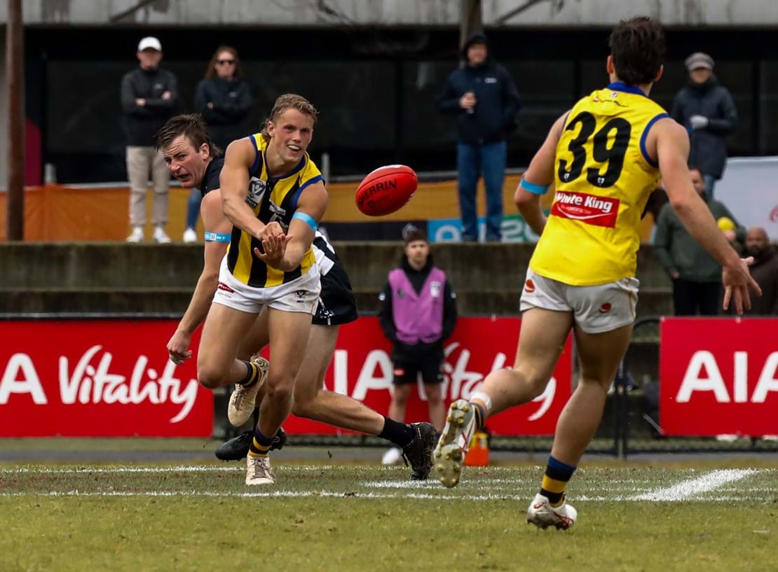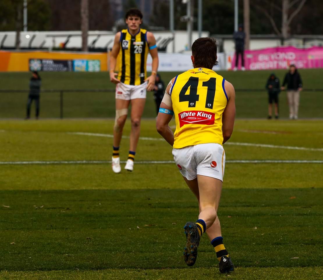 AFL-listed players Nick Coffield and Olli Hotton stood up all day with 28 disposals apiece, while Oliver Lowe delivered in front of the big sticks with two majors. AFL-listed ruckman Max Heath had the better of the ruck duel, accumulating 30 hit-outs, 18 disposals, and a goal. AFL-listed Matthew Allison was persistent in his return game, finishing with 16 disposals and one goal.