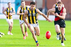 The sun broke between the clouds as the Zebs ran out at Windy Hill to take on the Essendon VFL side. The pre-match warm-ups were littered with showers so the ground was wet underfoot and the ball was sure to slip and slide on the surface.