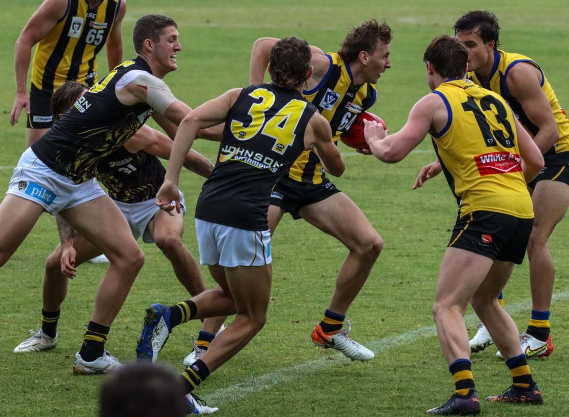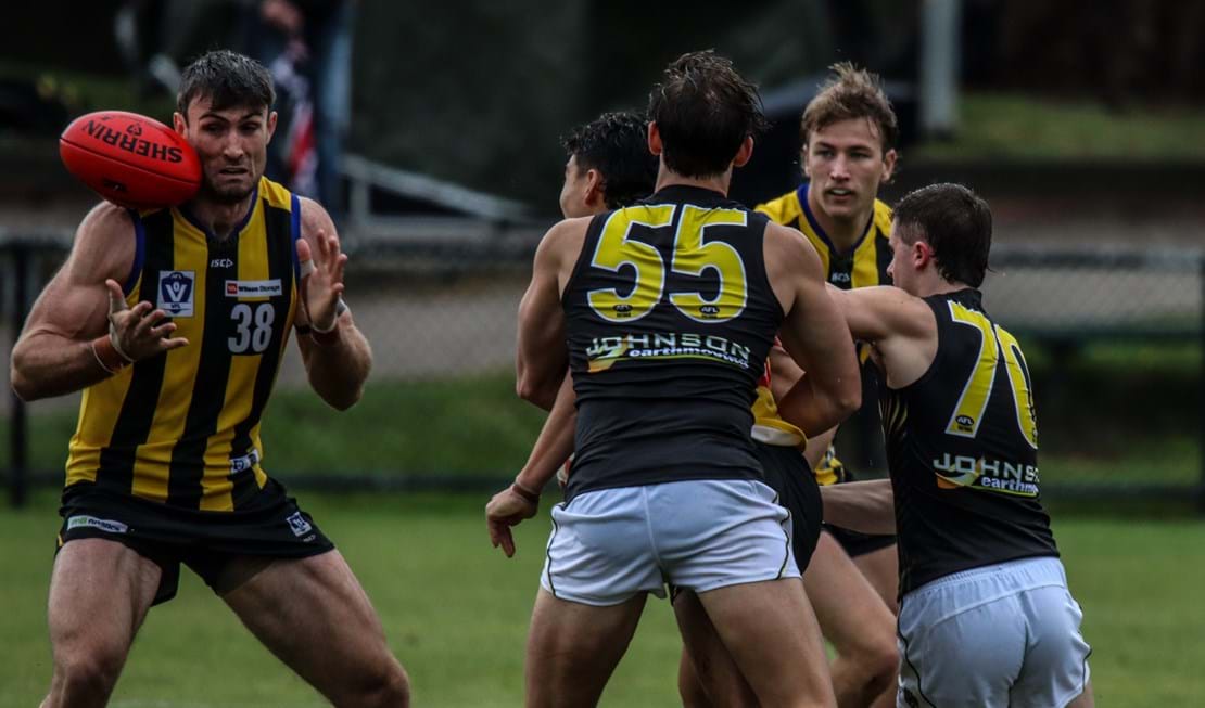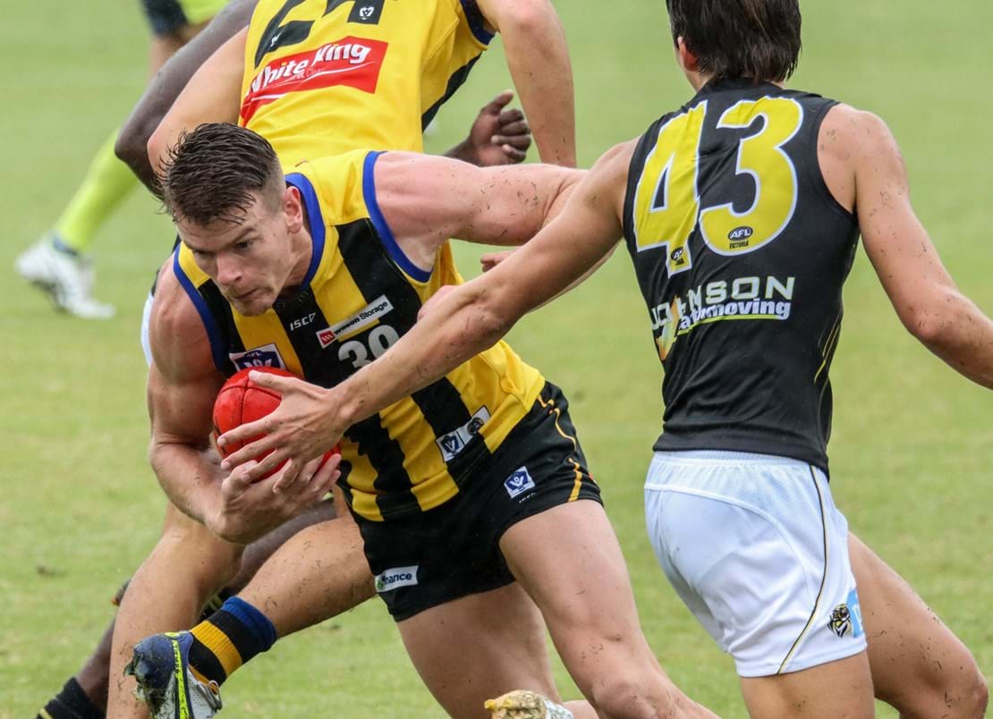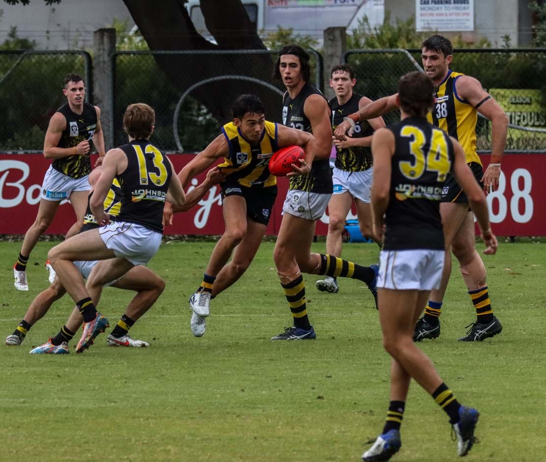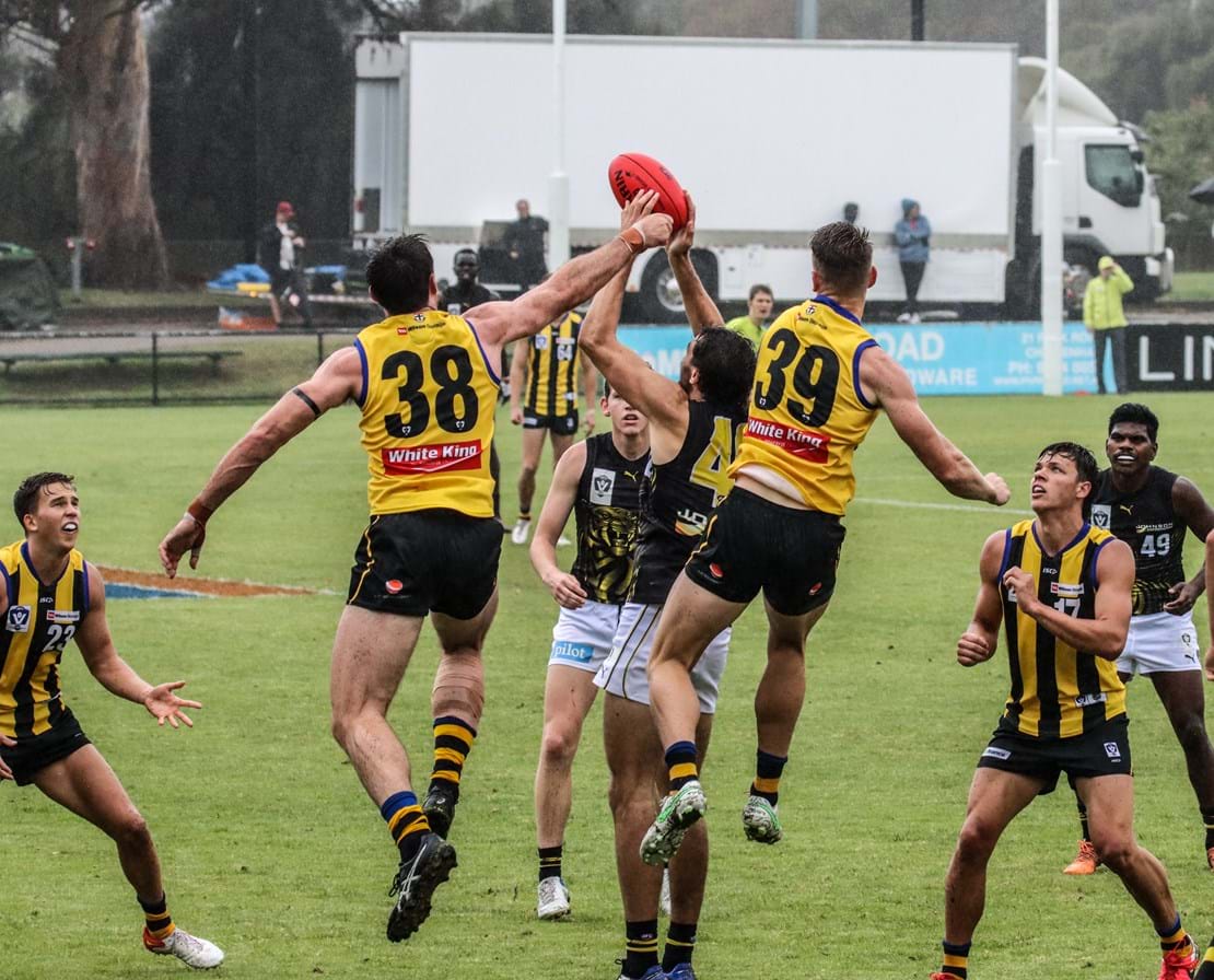 It was the midfield that was our strongest point on Sunday afternoon, with AFL-listed players Mason Windhager (28 disposals, 12 clearances, two goals), Ryan Byrnes (23 disposals, five clearances, one goal) and Tom Campbell (40 hitouts, 16 disposals, eight clearances, two goals) leading the way.