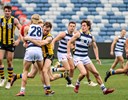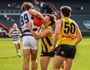The next 10 minutes saw a much fiercer and hotter contest, with neither side able to get on top and only a couple of chances being created in front of the big sticks. Geelong kicked the next goal right at the beginning of time on to take back the lead.
