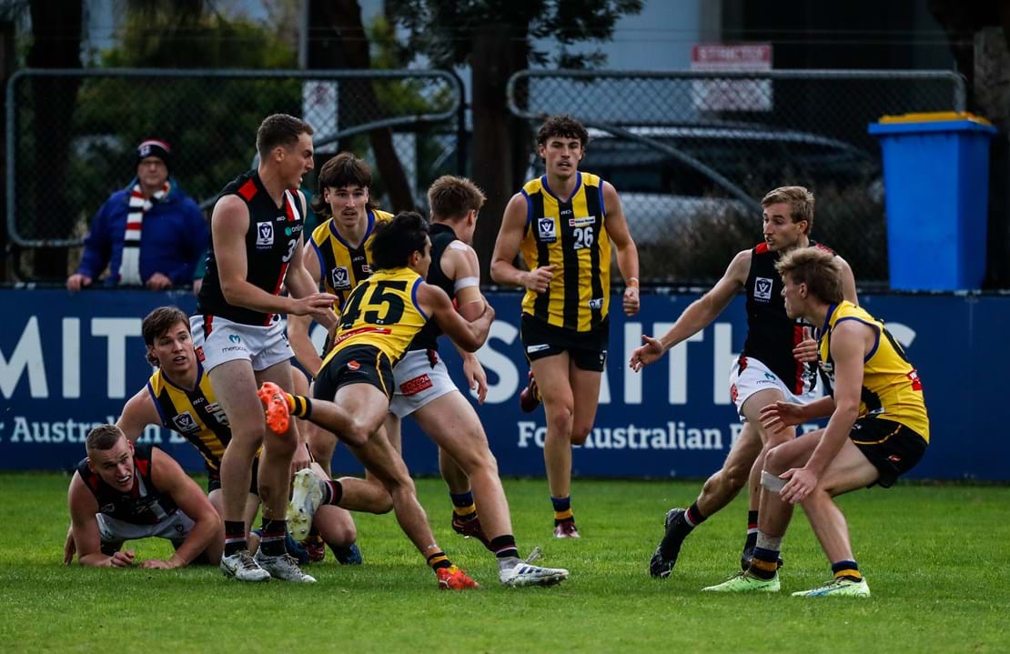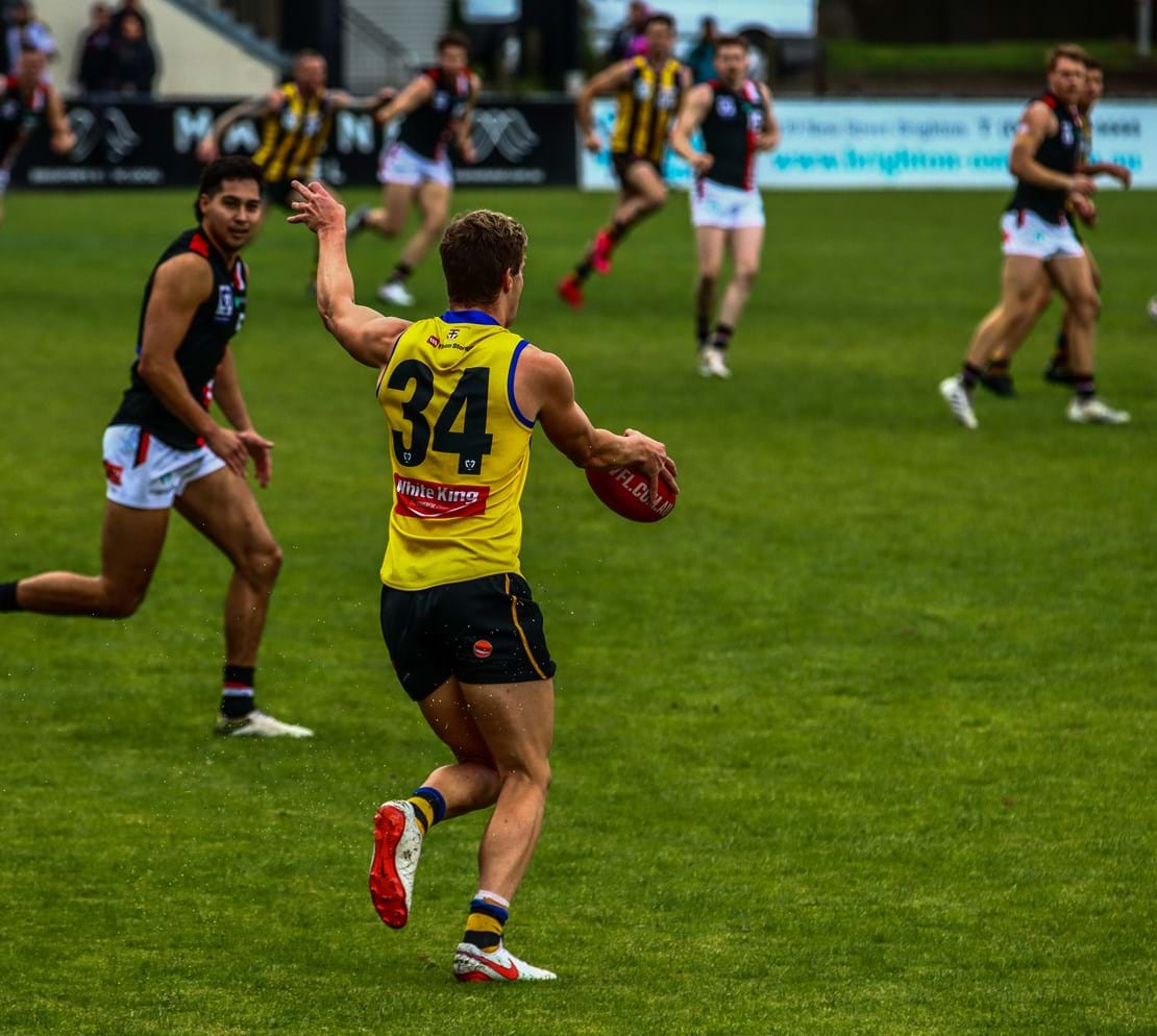 The commentators described Highmore as the ‘rock of Gibraltar’ for his solid defensive efforts throughout the course of the game for the Zebras, paired with AFL-listed key defenders Oscar Adams and Van Es. Fin Bayne led the way with 22 disposals, and Highmore reached 21 - the only two players to reach 20 touches for Sandringham.
