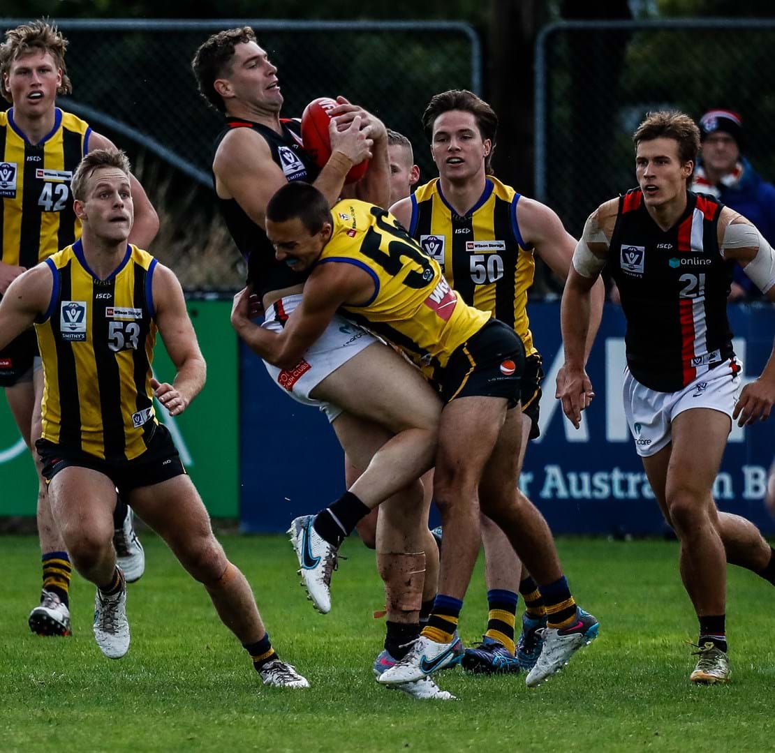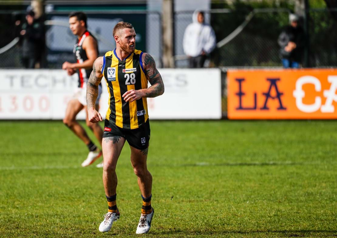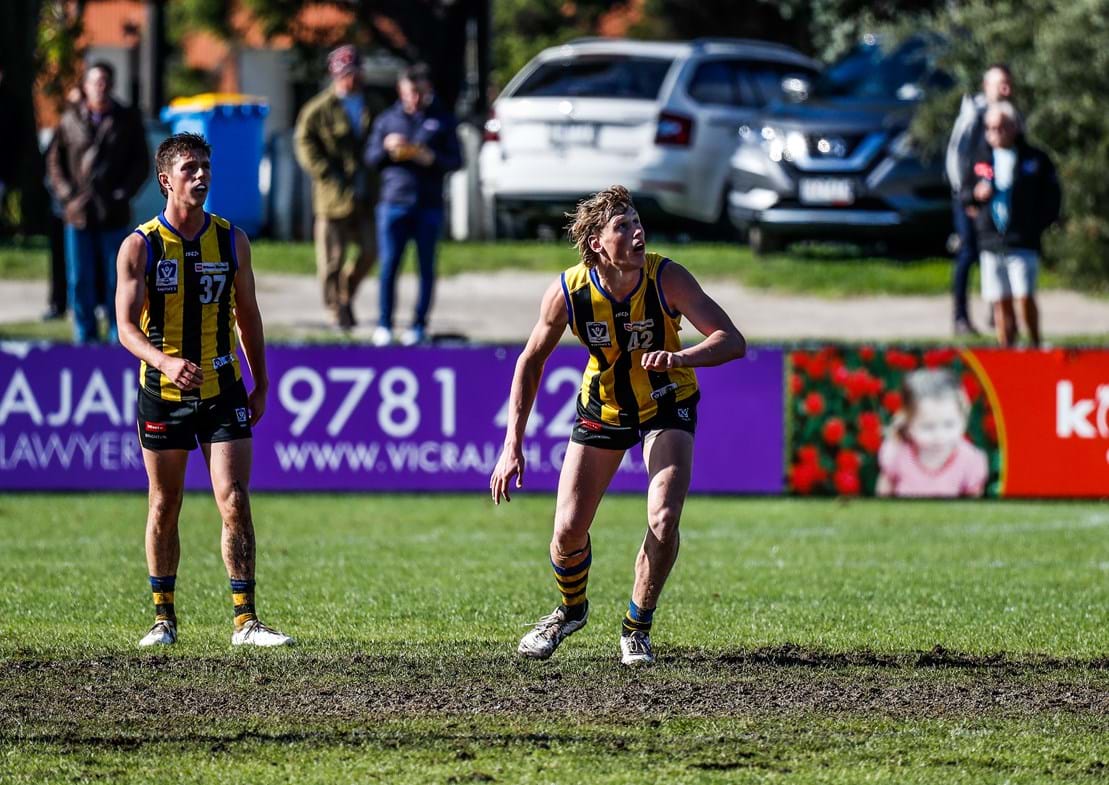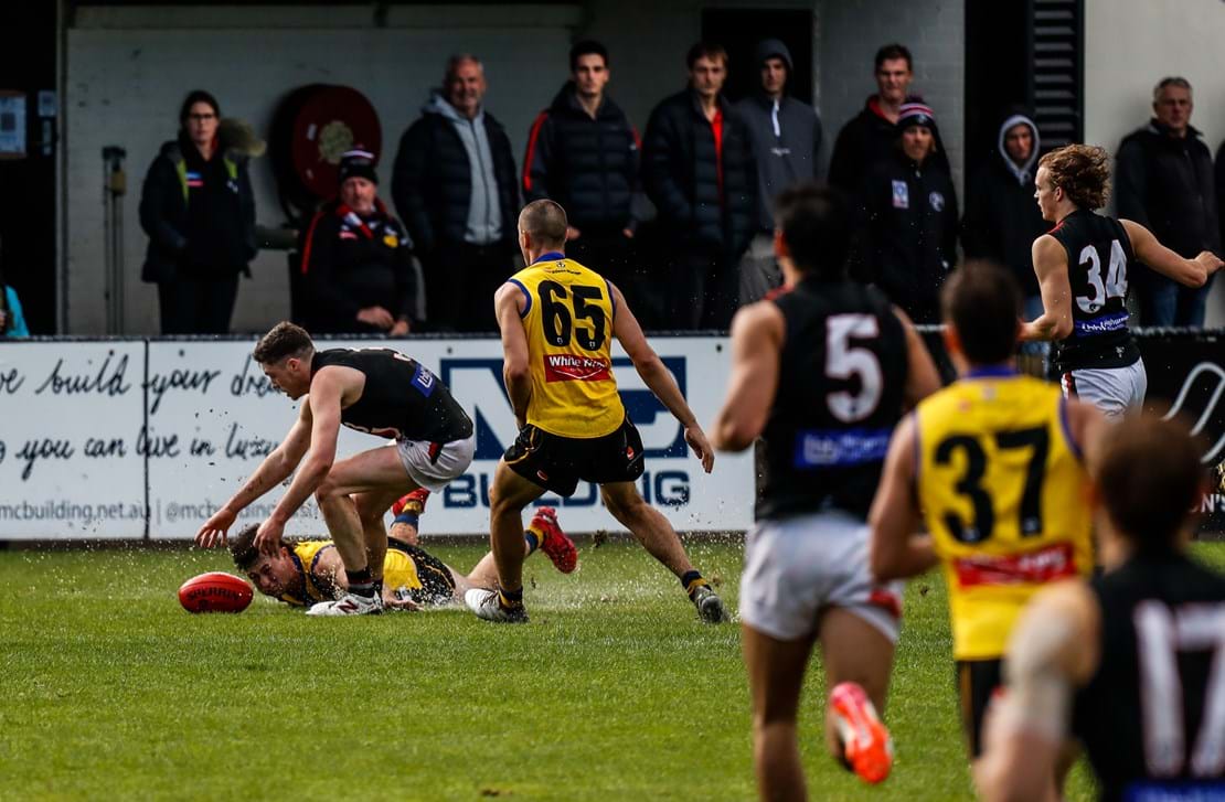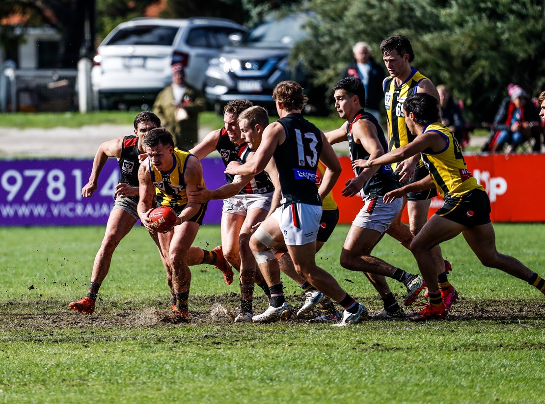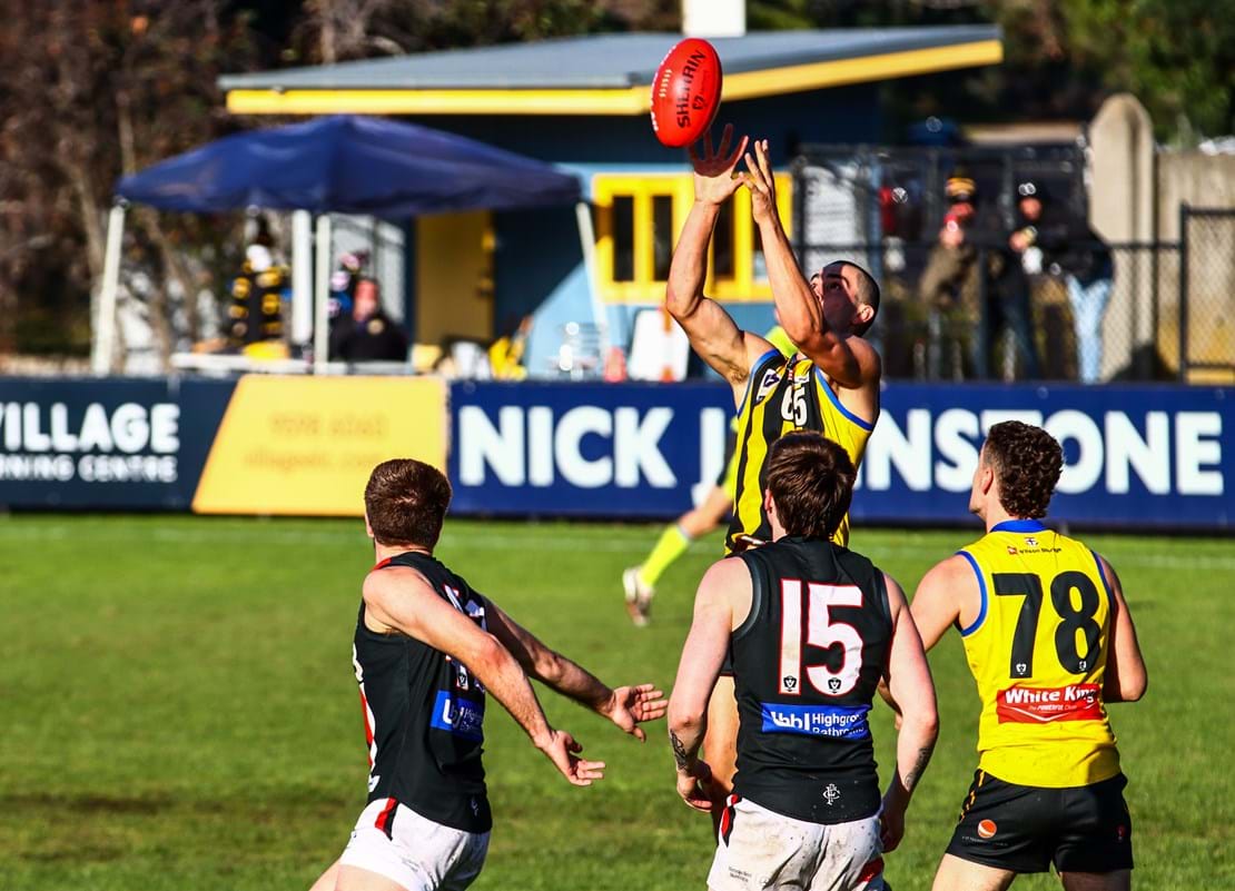 However, Frankston regained the momentum through a couple of quick goals, but our defenders never let up to ensure that we were still within striking distance at three quarter time. This was epitomised through the terrific defensive acts of Hawkins, Van Es, and Highmore who continued their aerial dominance.