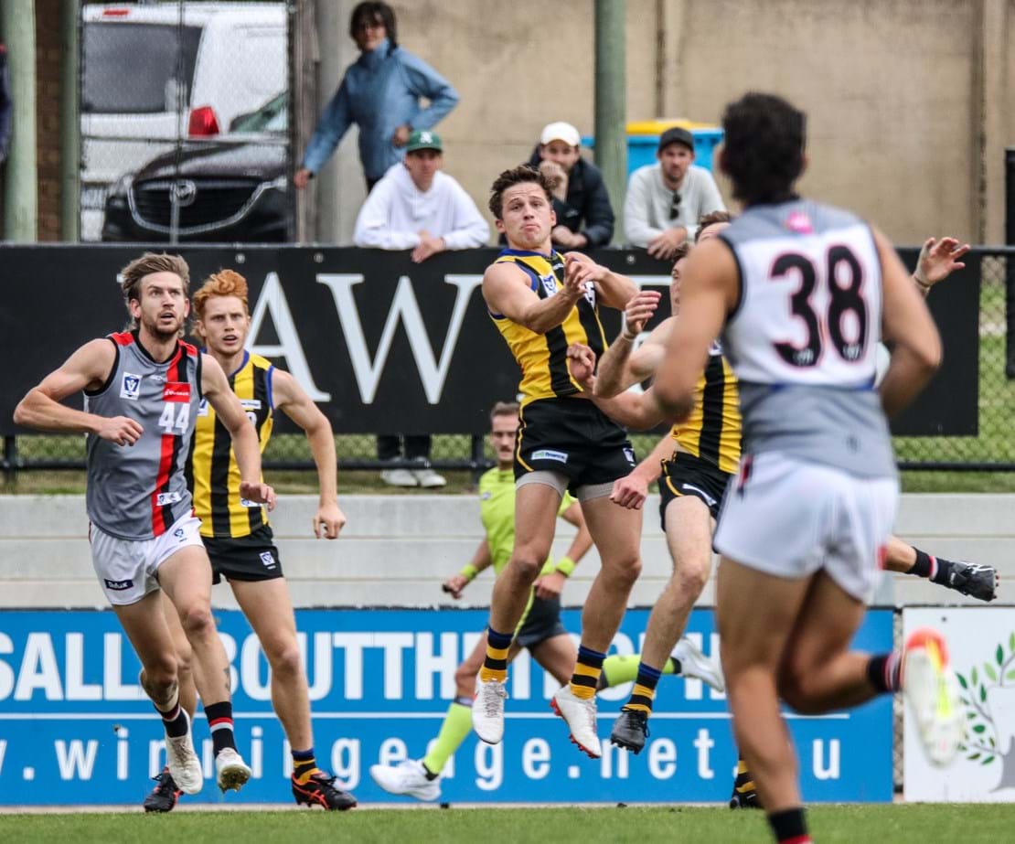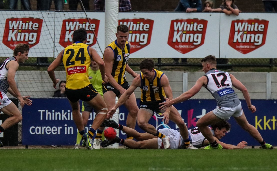 Among the best for the AFL-listed players was Ryan Byrnes, who kicked 3 goals and had 25 disposals plus six clearances. Jack Billings made a successful return with 21 disposals, 7 marks, five tackles and two goals and Tom Highmore was once again a presence down back, acquiring 20 disposals and taking nine marks.