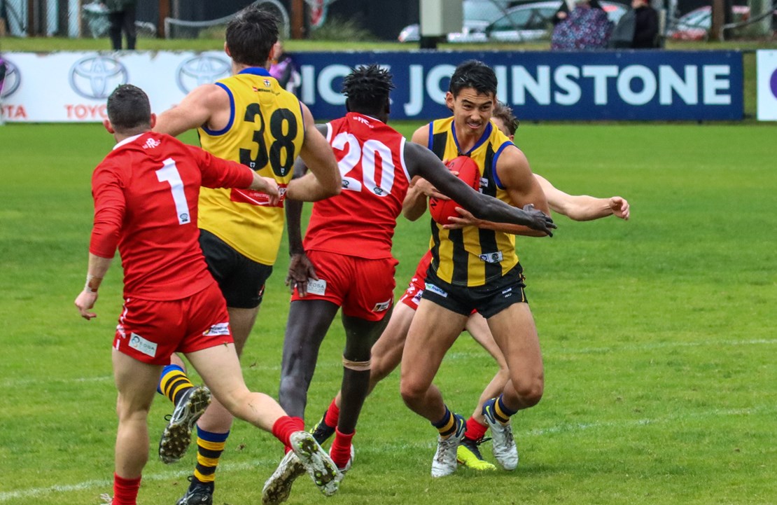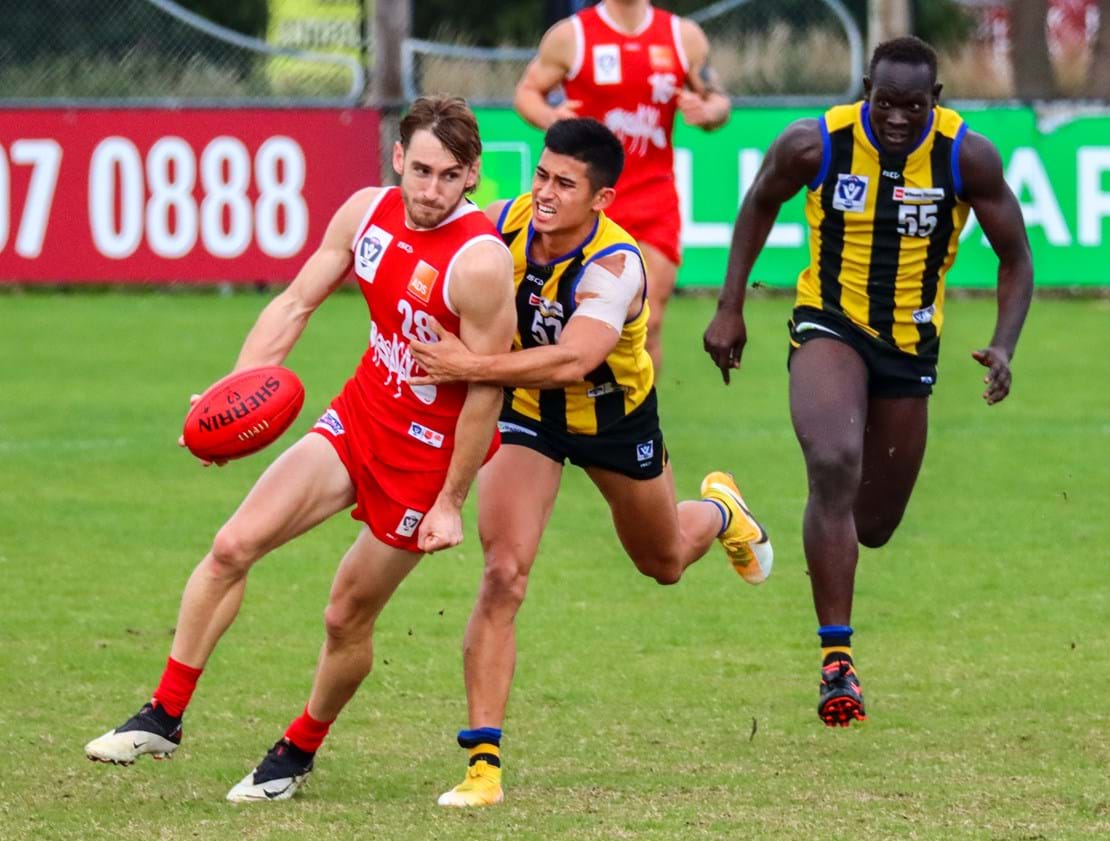 Some of the AFL-listed players also played key roles. Mitch Owens got the most disposals (32) and equal-most clearances (10) on the day, Tom Campbell had 22 disposals, 38 hitouts, eight clearances and a goal to his name whilst Jarrod Lienert, in his first Zebras game, collected 31 disposals, 22 kicks & eight marks.