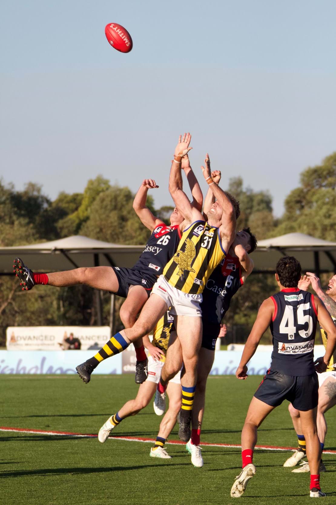 The combination of the big men in Tom Campbell and Max Heath is working wonders as they combined for 62 hit-outs.