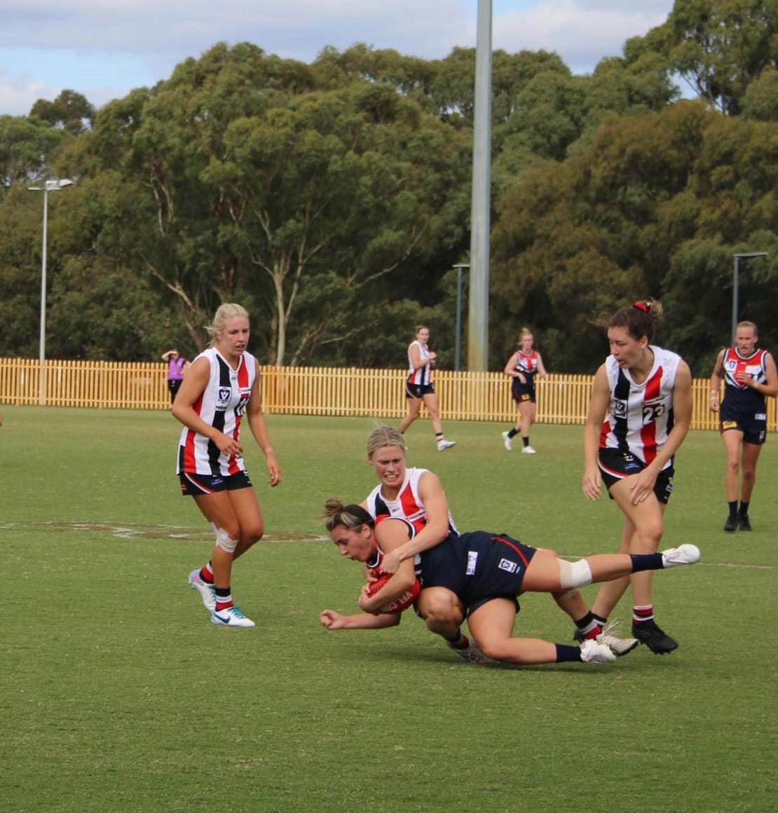 Standout displays from Margaret Kershaw (19 disposals and 13 hit outs), Jemima Wrigley (17 disposals and a goal) and Winnie Laing (17 disposals and five tackles) contributed to the result.