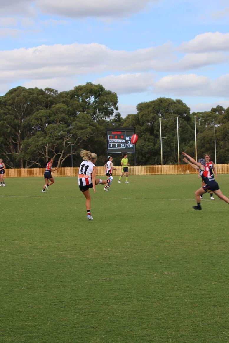 The Saints went on to kick four of the next five goals with majors from Kaukiono, Mason, Wrigley and Lucy Burke helping to build a 29-point lead into the half-time break.