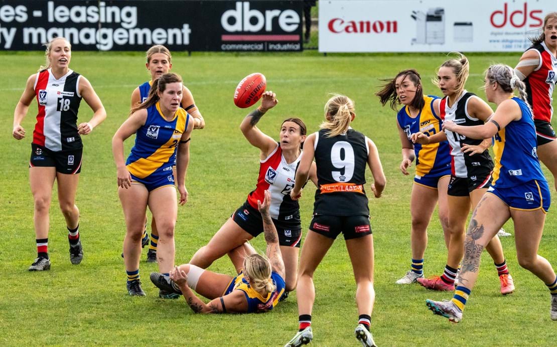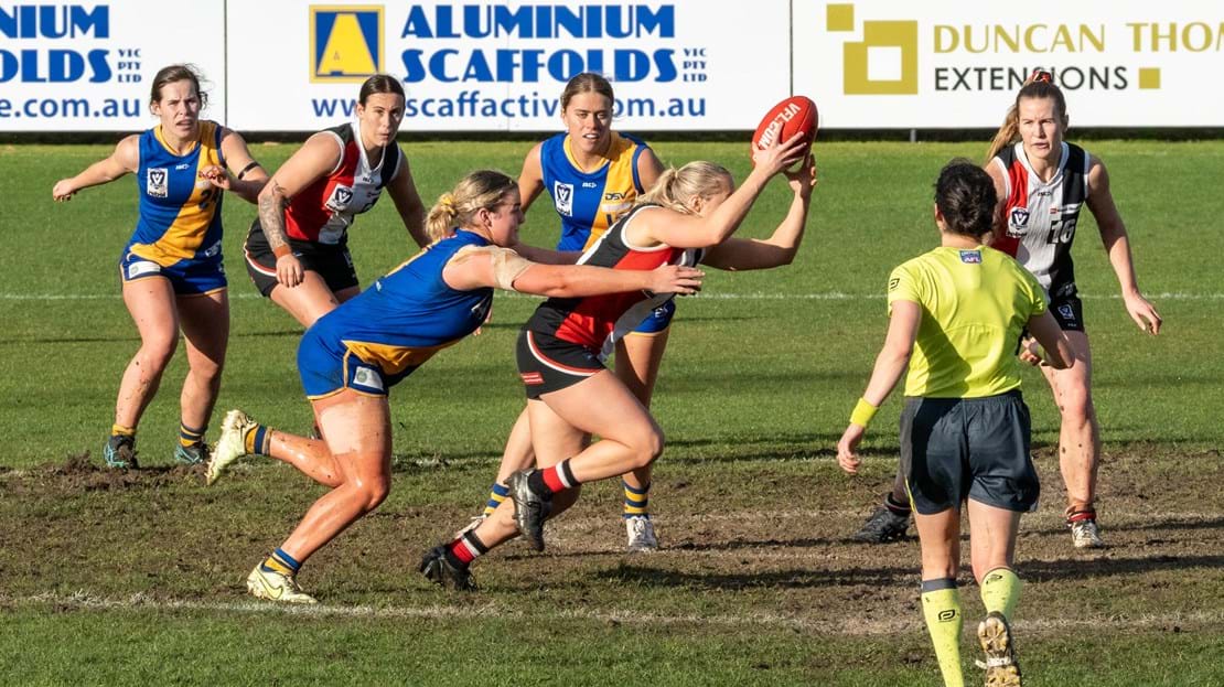Ali Hynes (10 disposals, five clearances) was immense with eighteen tackles whilst fellow Co-Captain Tayla Kearns (one goal, five tackles) managed eleven kicks from eleven disposals.