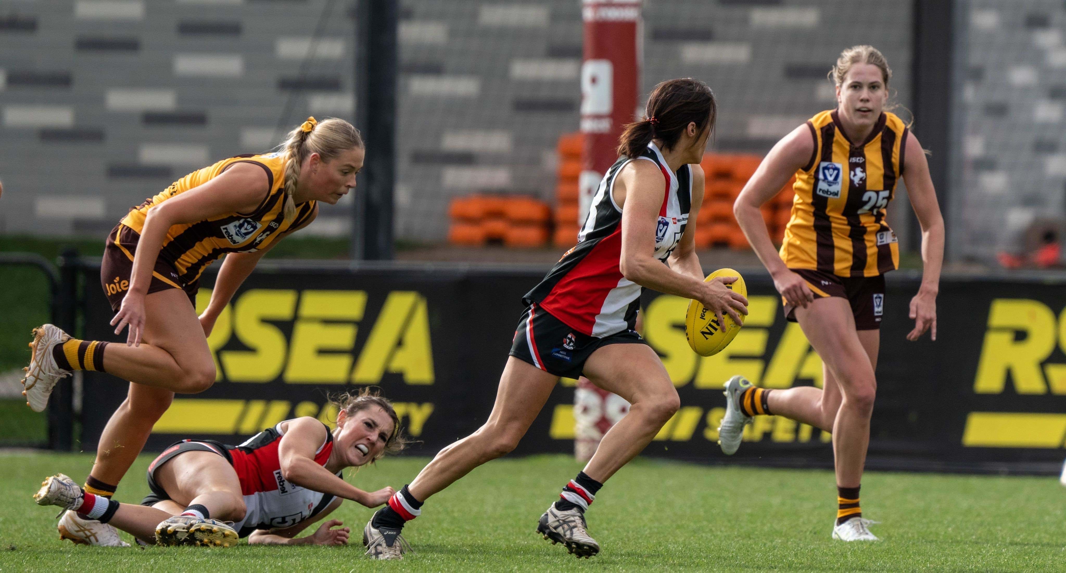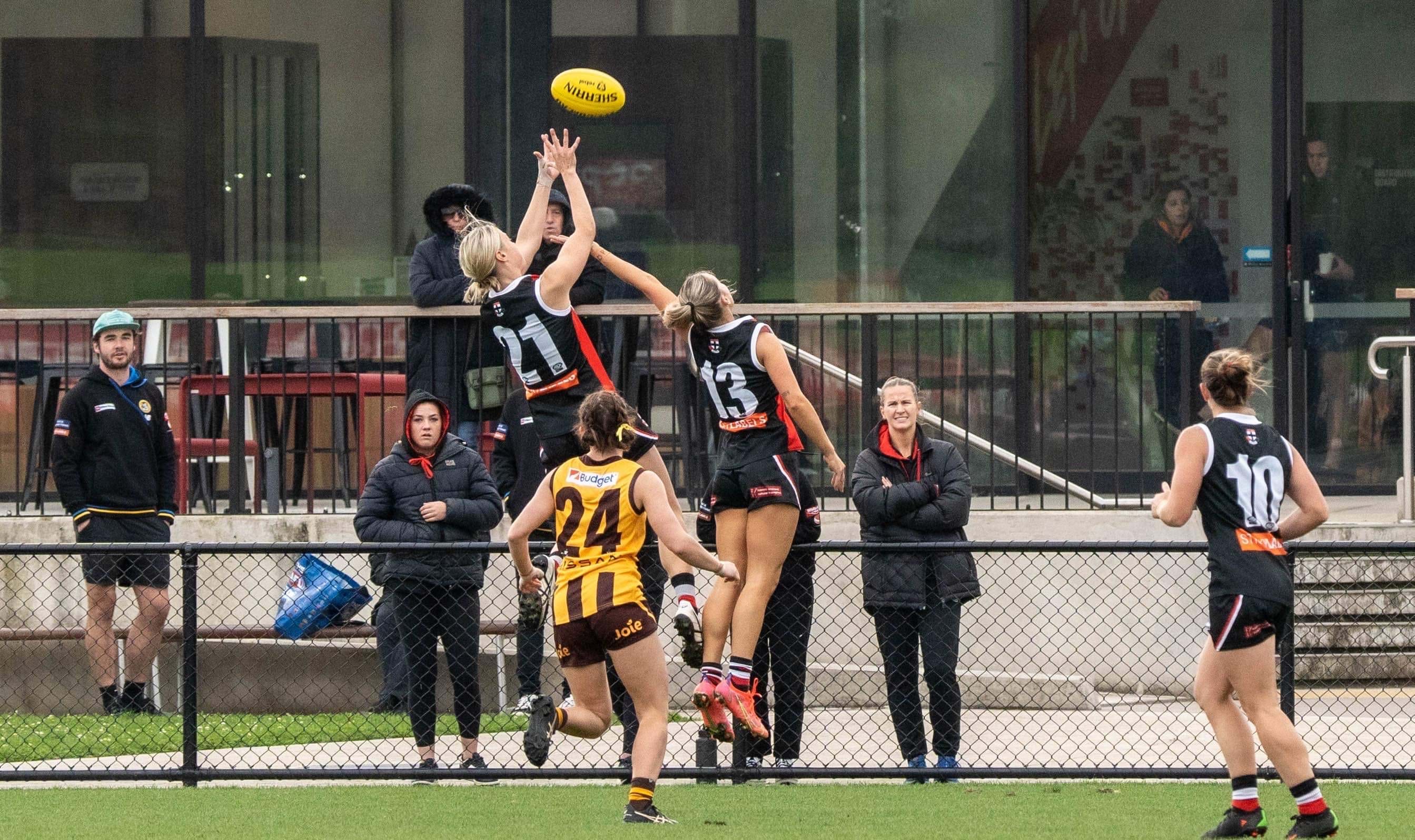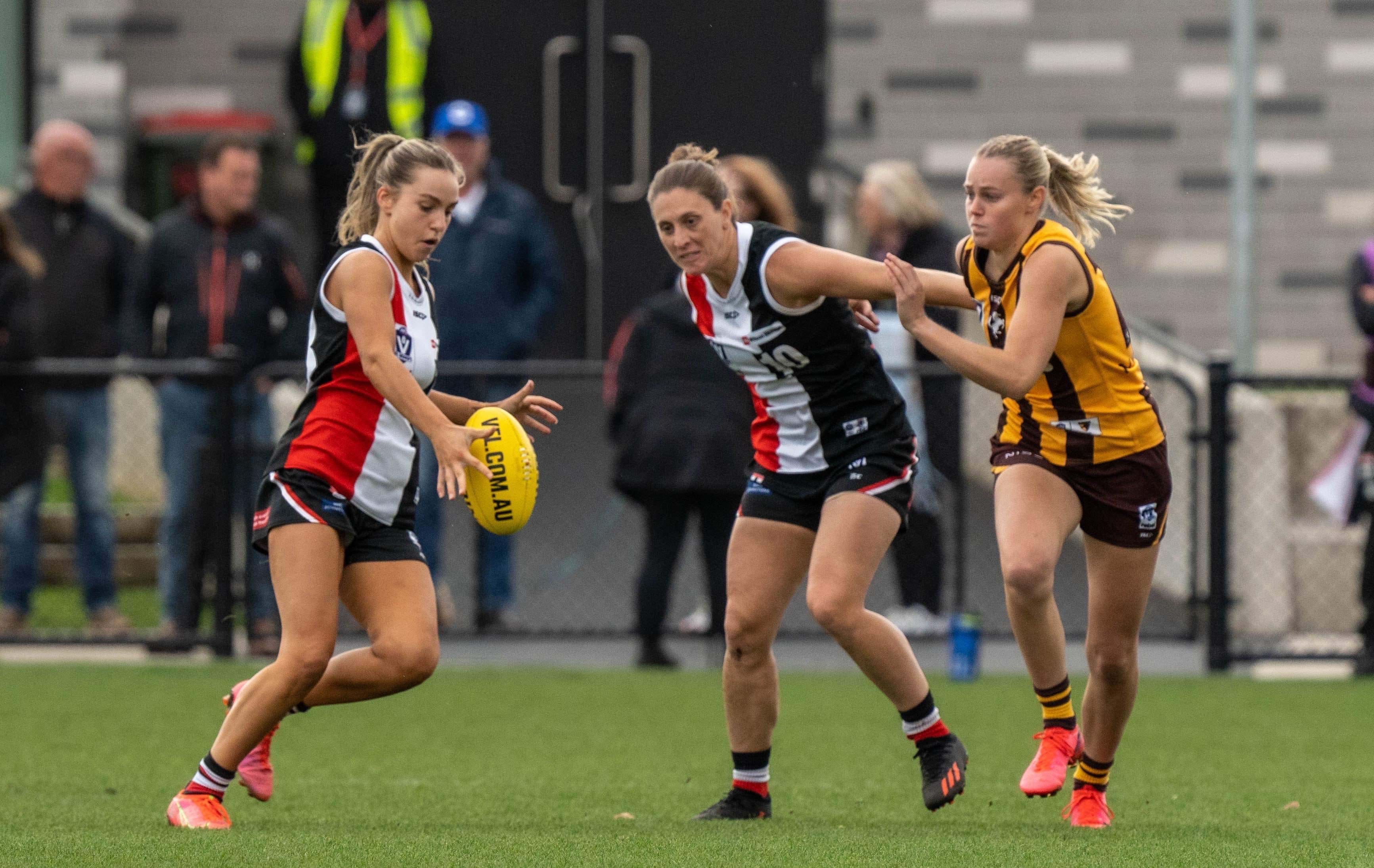 Tessa Boyd got to work early in the second term, encouraging the Saints' defence to lift following an important goal-saving mark on the line. Finding another level, Boyd continued the pile on the pressure - laying the tackle of the day during the ninth minute.