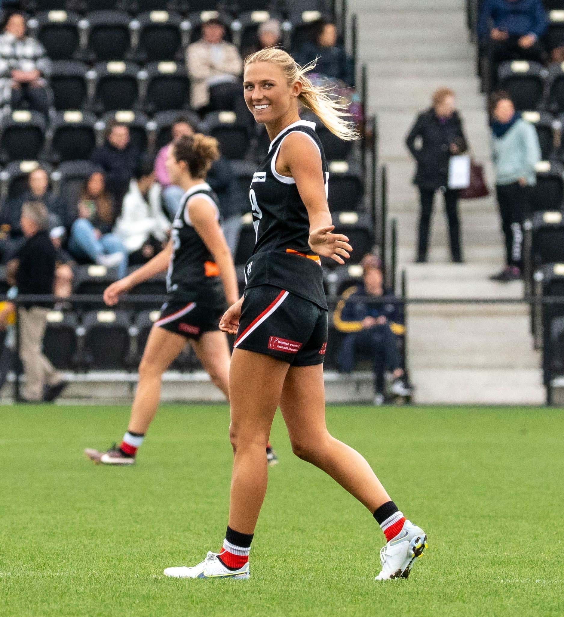 Olivia Robinson had a successful first outing in the red, white and black, finishing with 6 disposals and 2 tackles.