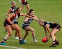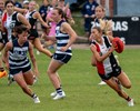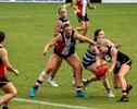 Gaby De Angelis led the way for the Saints with 19 disposals, 4 clearances, and 3 tackles. Setting up our second goal of the morning with repeated second and third efforts to keep the ball travelling towards goal, allowing Winnie Laing to grab the lead. Throughout the second half, De Angelis caused problems for the Cats' defence, frequently losing her player and freeing up teammates for shots.