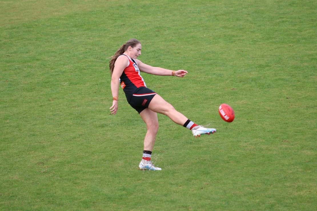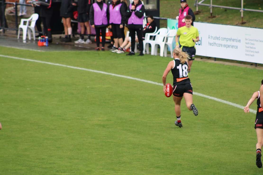 The Saints backline got to work early after that with Jolliffe, Boyd, Moore, Hynes and Enno swarming around the contest, whilst Kim Ebb taking a mark on the wing to help put a stop to cats pressure up the ground. Once eventually taking the play up into the Saints forward line, Gabi De Angelis attempted getting the team on the board, although unfortunately only resulting in a behind.