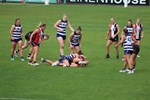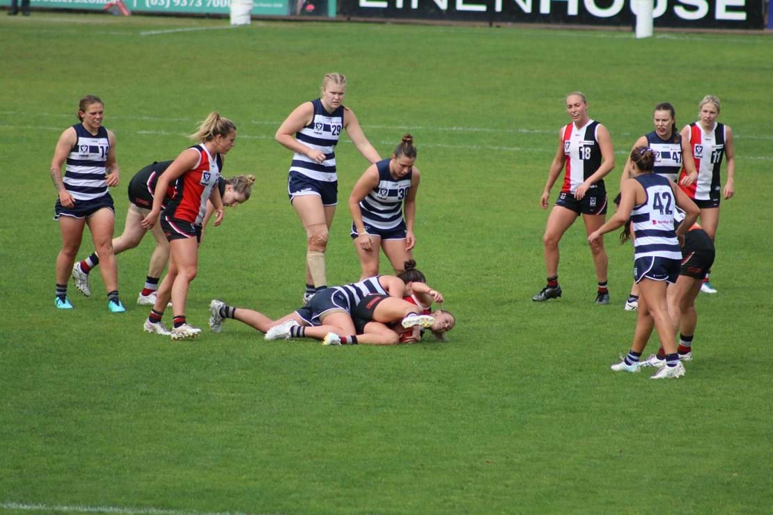 A game which was predominantly played at ground level, Lucy Burke, Jane Moore, Winnie Laing and Deanna Jolliffe had 13 marks between them, an impressive effort that helped slow down Geelong's play. Returning to the field from injury was both Co-Captains Alexandra Hynes and Tayla Kearns who brought their defensive pressure having 5 tackles each.