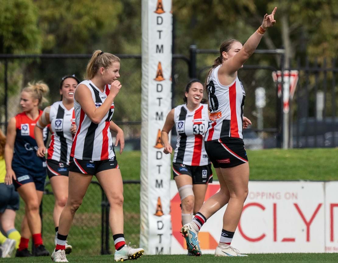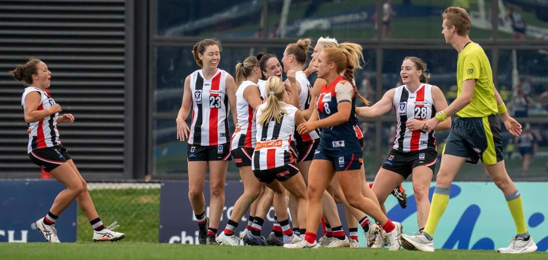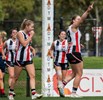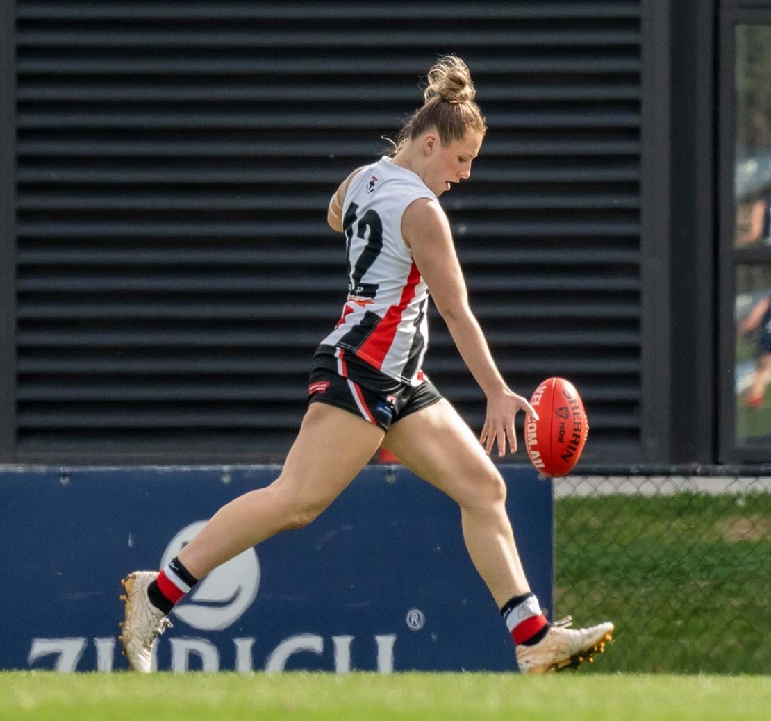 Hodder took control in the contest in the second half, laying five tackles to finish with seven, whilst Tayla Kearns dominated the skies with seven marks of her own to go with 12 touches. Burke slotted three second half majors to end with four, and debutant Tregellis impressed with two second half goals to finish with three, as the Saints ran away 42-point victors on Sunday.
