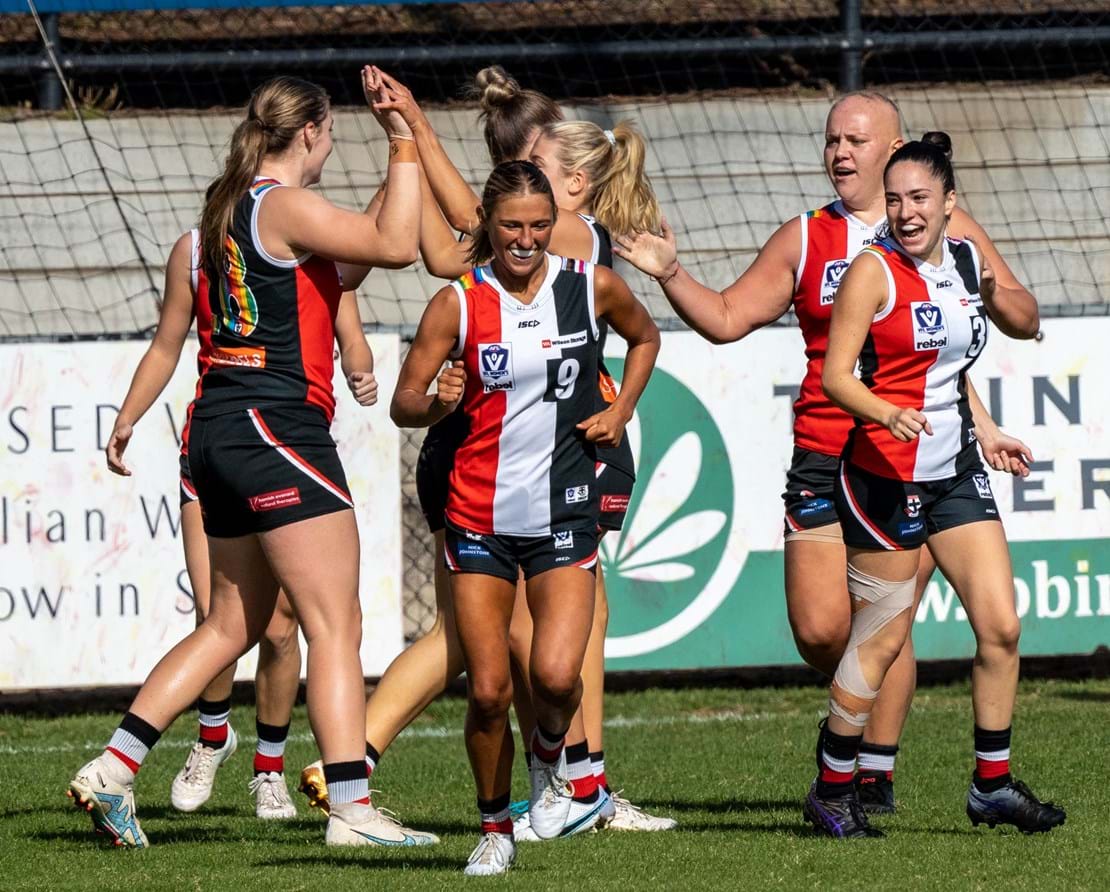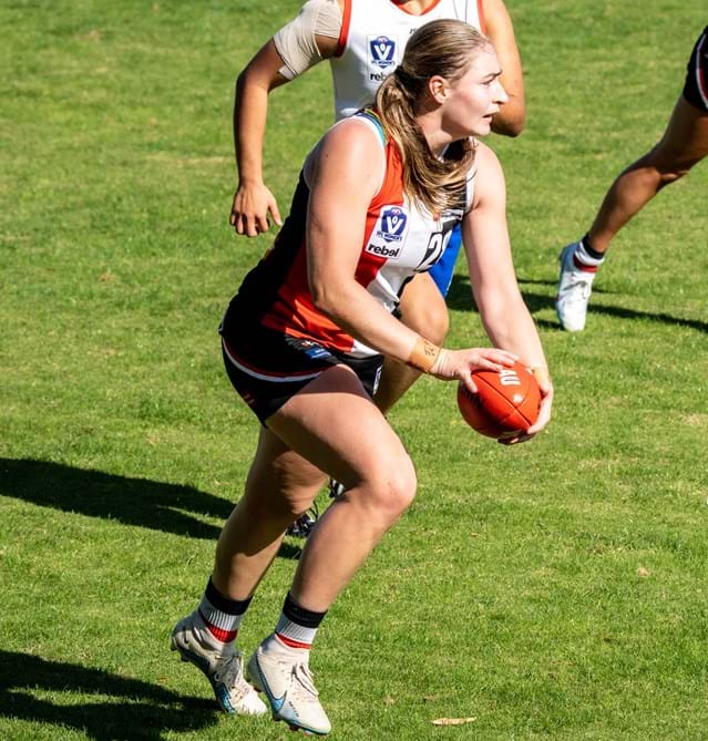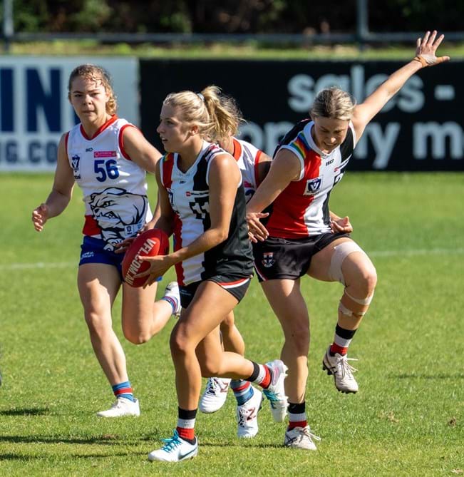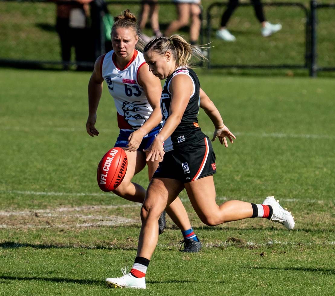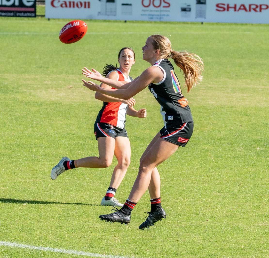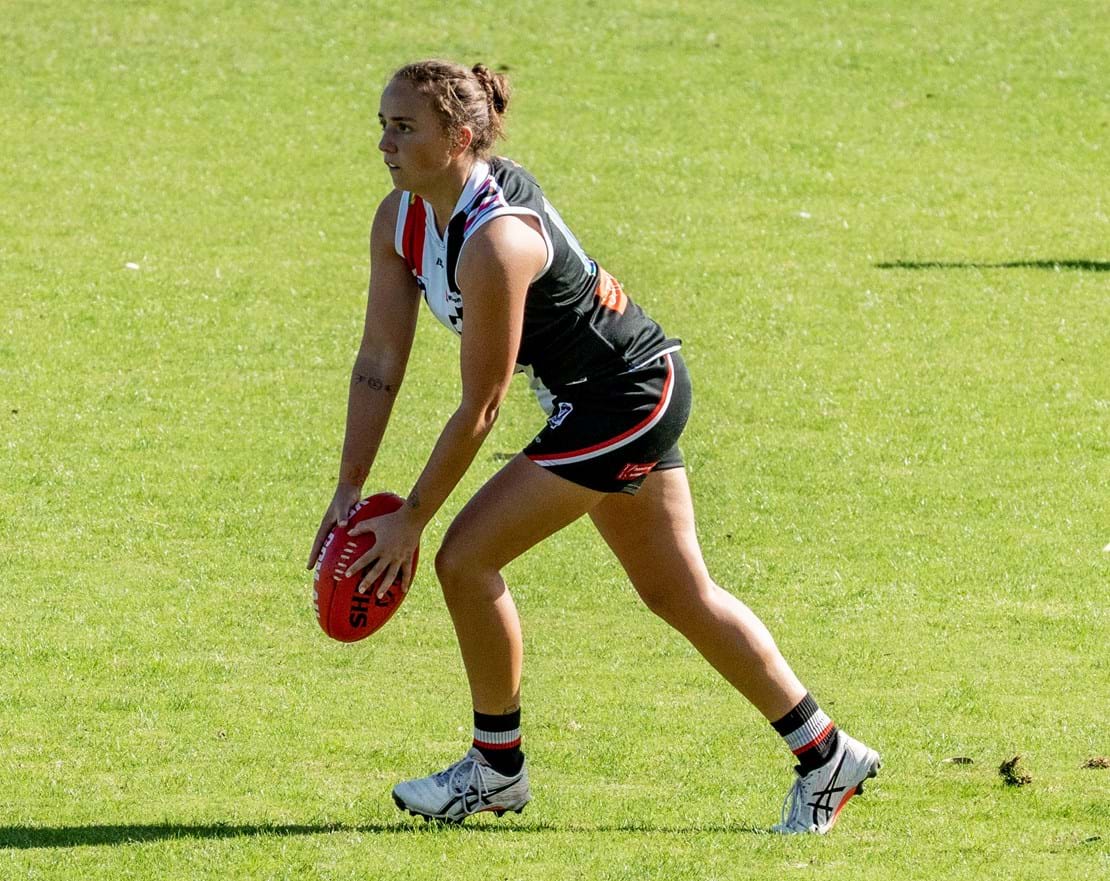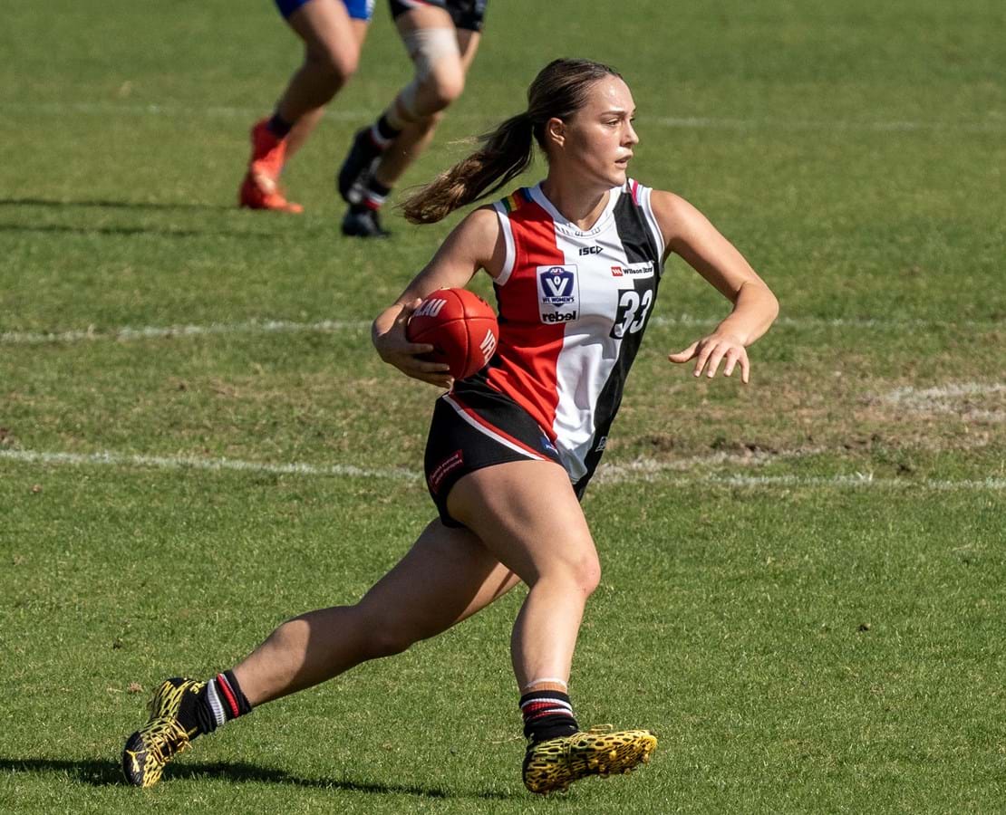 Pulling on their guernseys for the first time as Saints this weekend were Charli Murphy (debut) and Mikayla Williamson (Dandenong Stingrays - Coates Talent League). Williamson had 11 touches and Murphy took a great mark on the wing in the fourth quarter to get the game flowing for the Saints again. Lucy Burke had a massive impact for us down forward kicking two goals and acquiring 15 disposals, whilst Gaby De Angelis also kicked a goal and finished with 23 disposals and seven tackles. Our match-winning goal kicker Tessa Boyd also had 24 touches to go along with her celebrations. The Saints dominated possessions all day in their fight against the Dogs - Caitlin Matthews finished with 20 touches and eight marks, along with Georgia Foran and Winnie Lang who both had 15 disposals.
