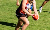 After more contested footy, the ball was once again in the Dogs' half and a shot on goal from 45 out was heading between the big sticks before a hard run from Deanna Joliffe and Boyd saw the ball touched on the line by both players, saving the goal. After a turnover from the kick in, there was another snap on goal from the Bulldogs, with Boyd once again pushing it over the line to save a major.