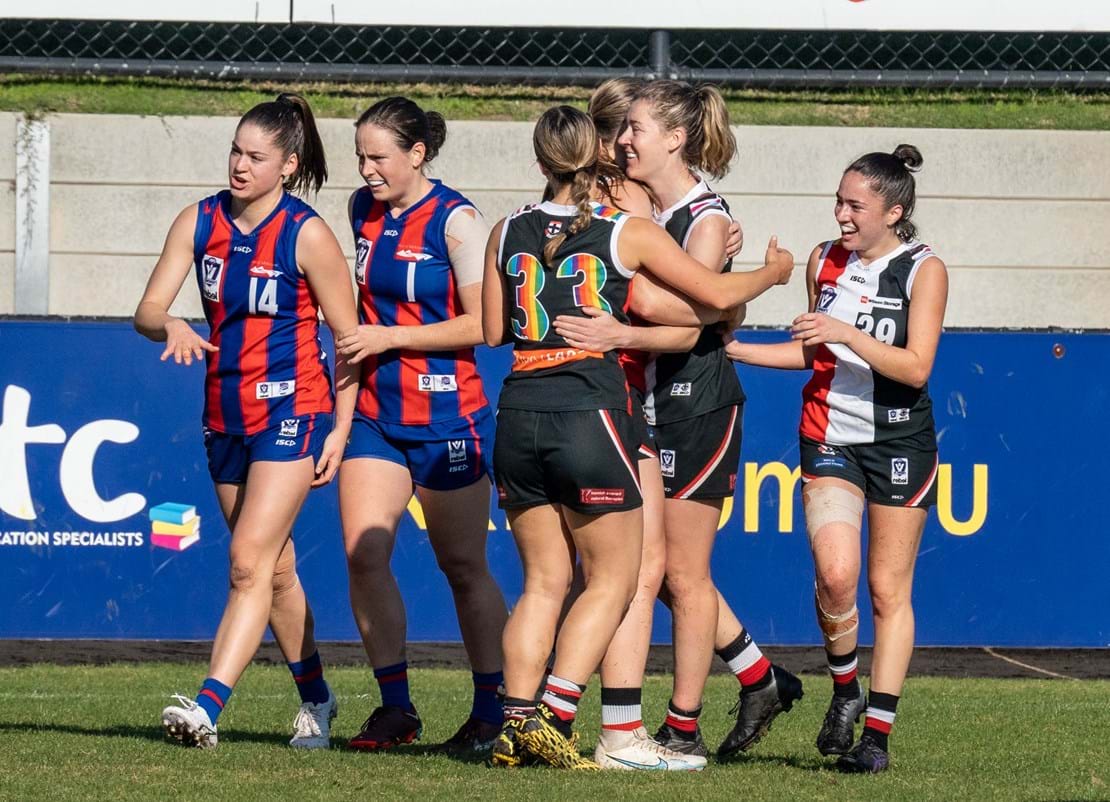 Tessa Boyd continued her streak of great last quarter performances in close games, with a magnificent tackle at half forward to win a free kick for holding the ball, as well sending the Saints inside 50 multiple times in the dying stages of the match. Laing and De Angelis combined for 44 disposals, and Jemma Webster, Kearns, and De Angelis all laid seven tackles each. Hynes gave the Saints midfielders first ball use all day, amassing 23 hit outs and six tackles of her own.