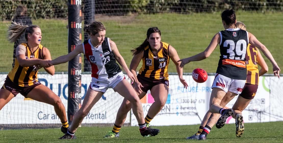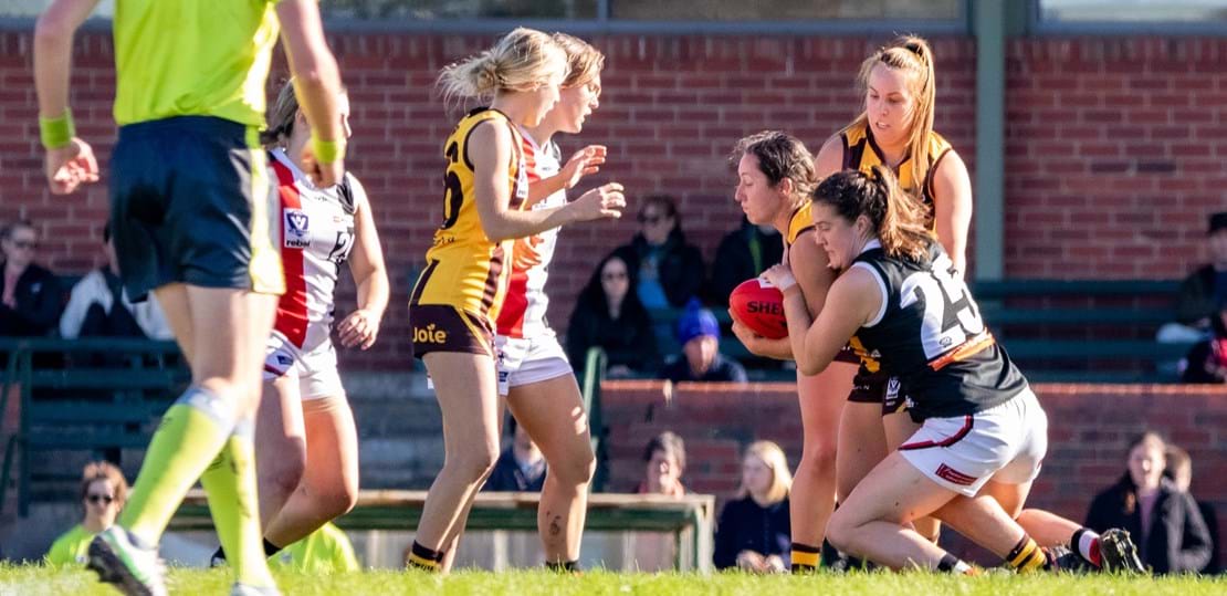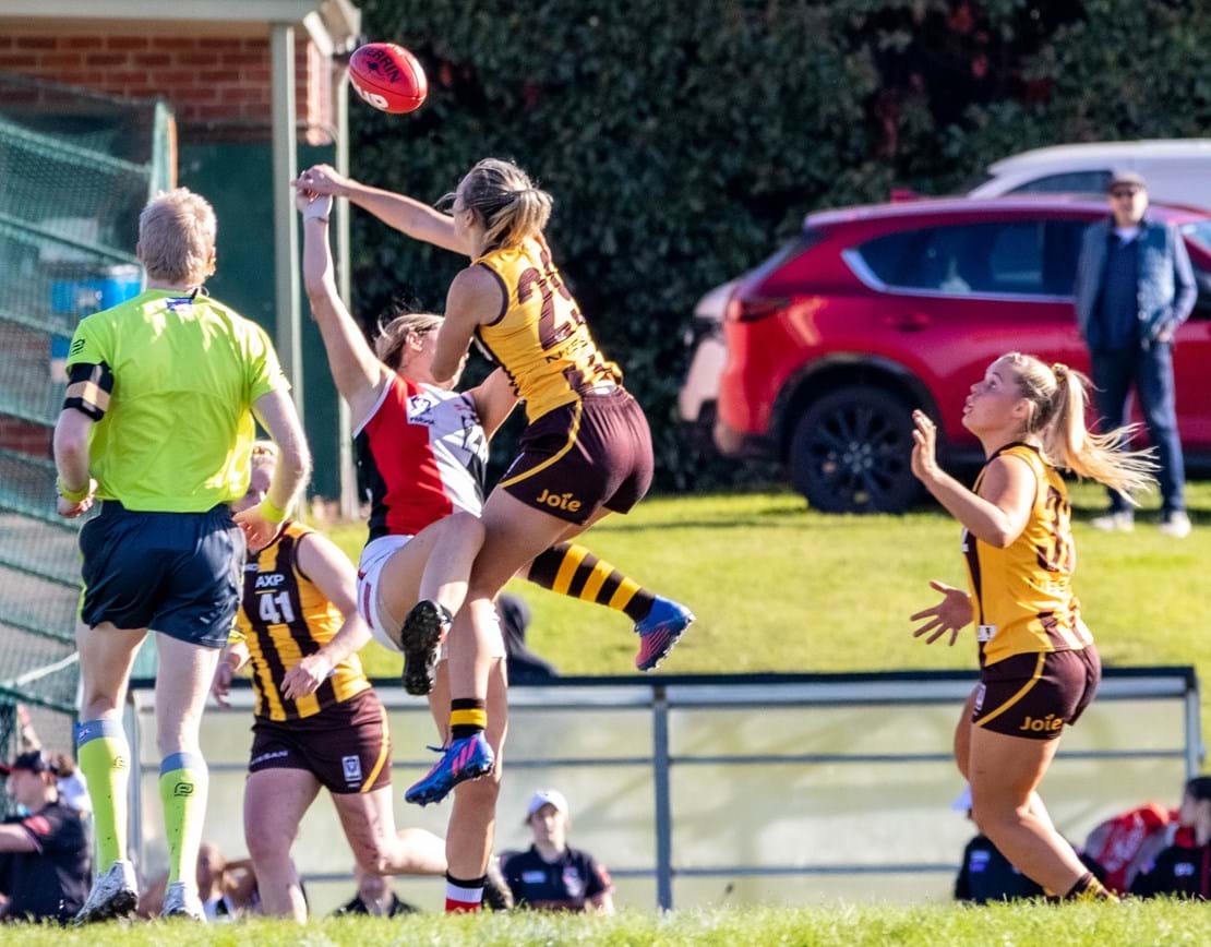 Winnie Laing had an impressive game, linking up the backs and forwards well whilst finishing with 19 disposals. Tayla Kearns also had a field day up forward with three goals from 13 disposals.