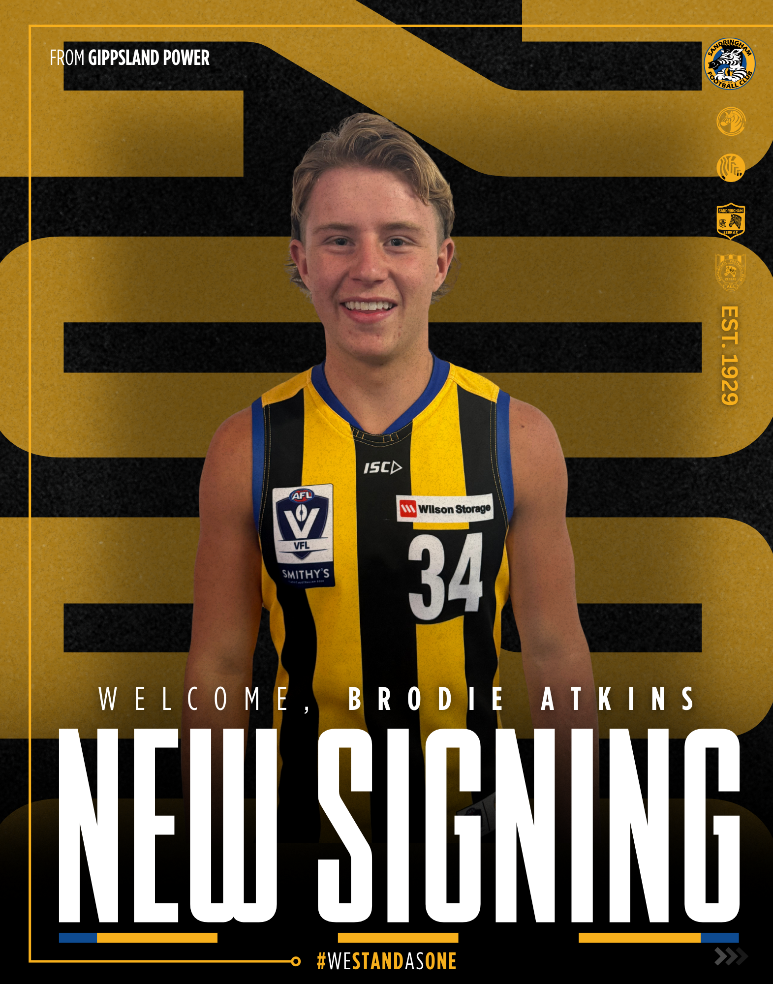 The Sandringham Football Club is excited to announce the signing of 2025 Coates Talent League Best & Fairest (Morrish Medal) winner Brodie Atkins.