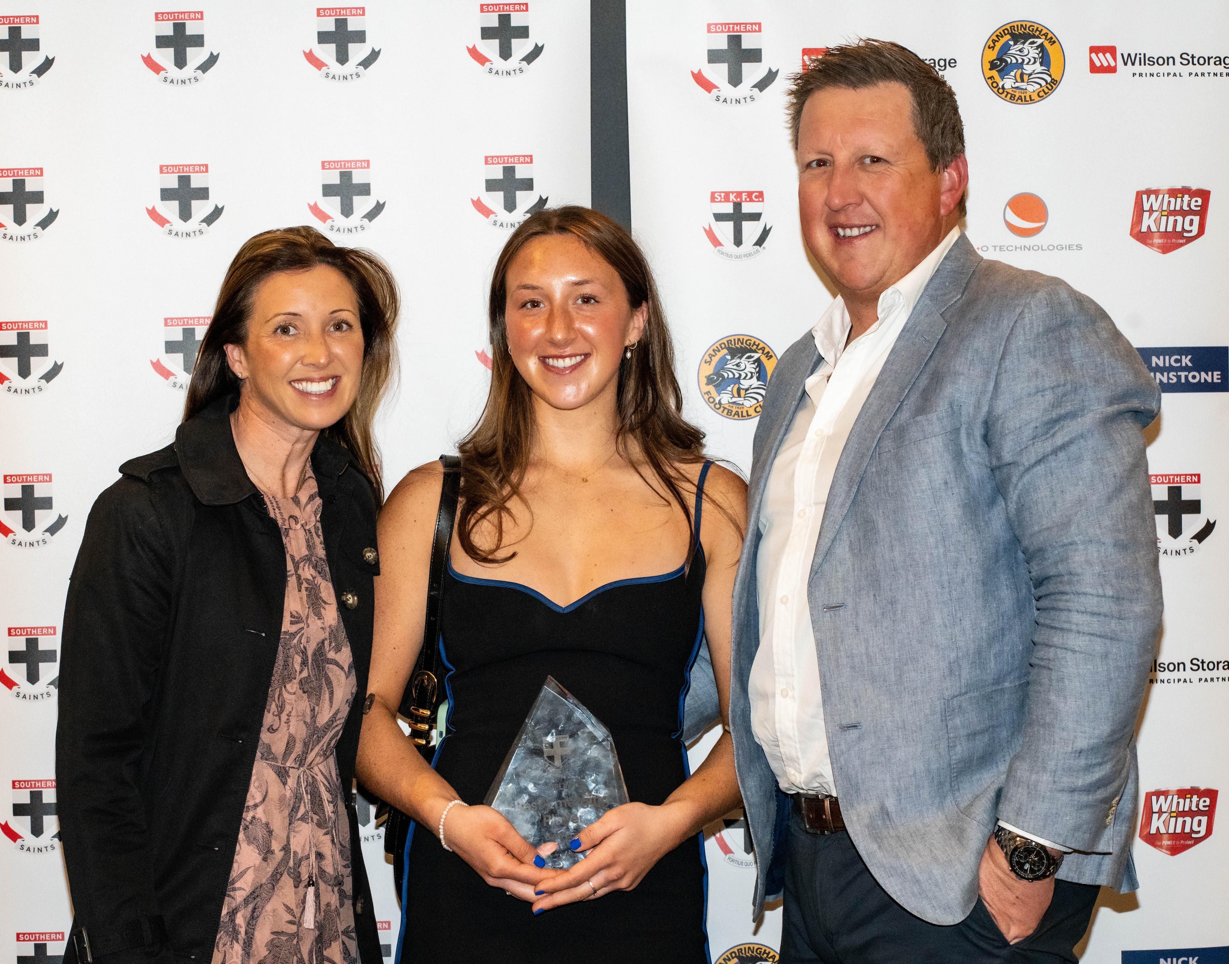 Tessa Boyd, Ali Hynes, Bella Enno and Jemima Wrigley and Laura Munyard round out the award winners for the night, but it was Winnie Laing who was crowned the Southern Saints Best & Fairest for the 2023 Rebel VFLW season.