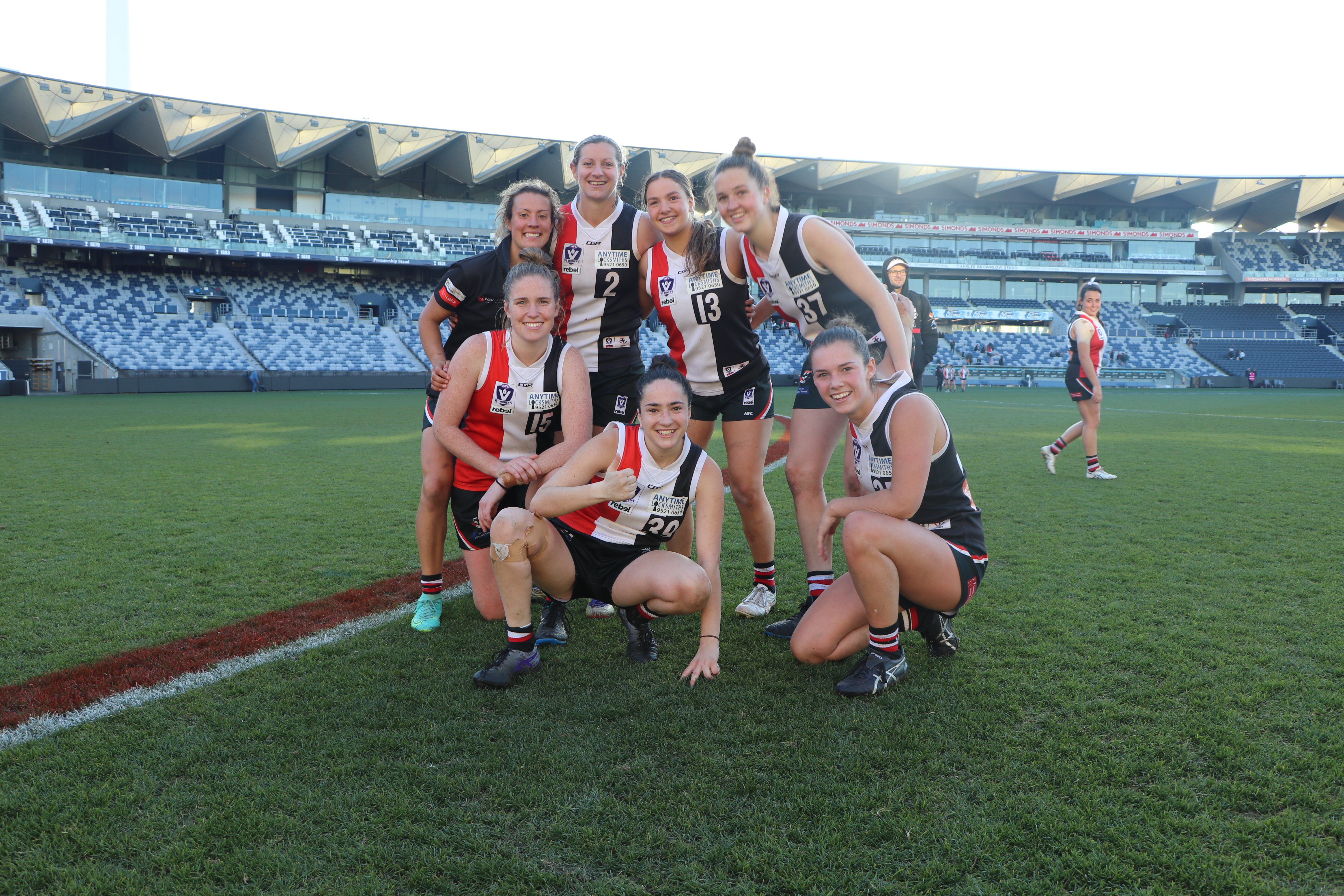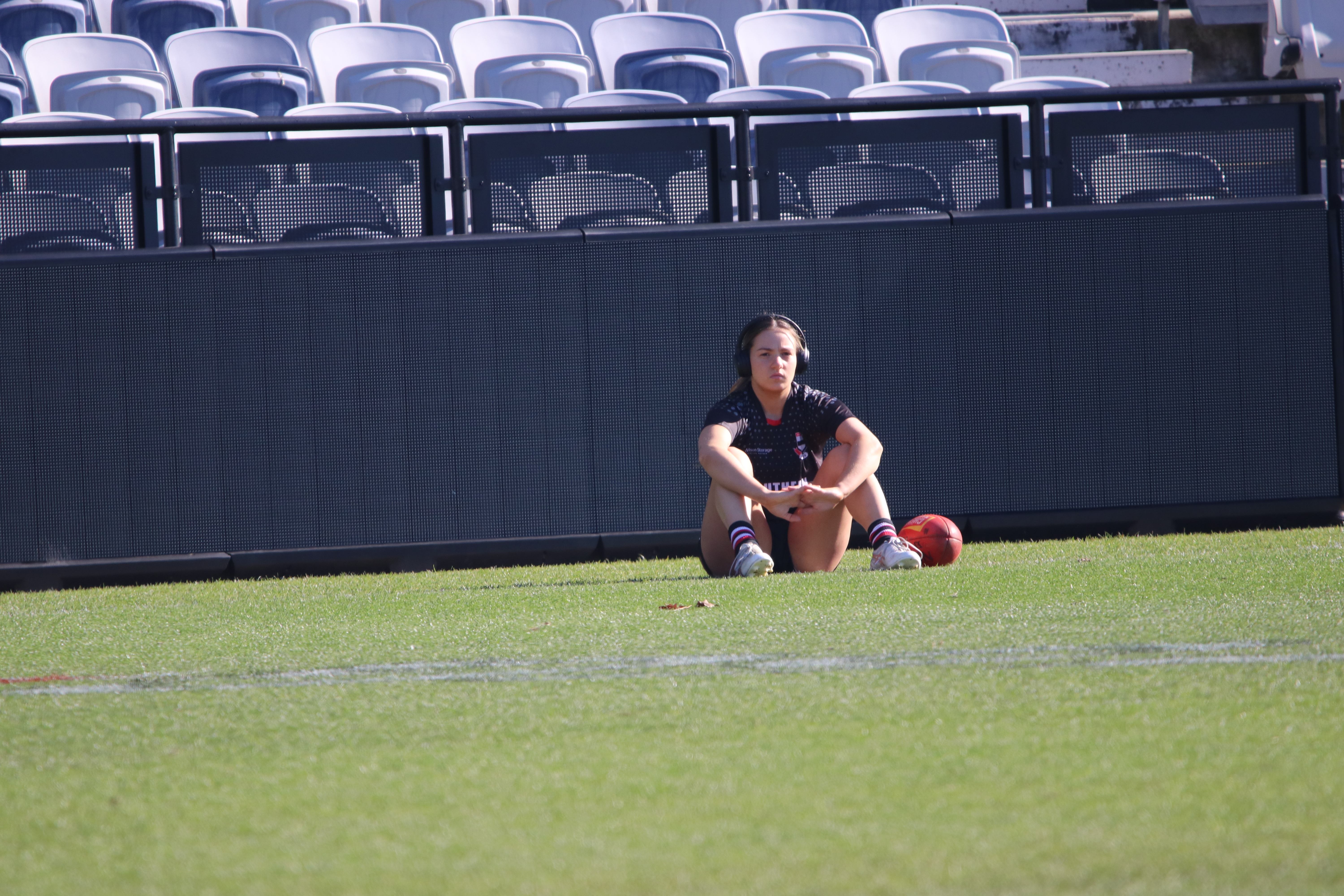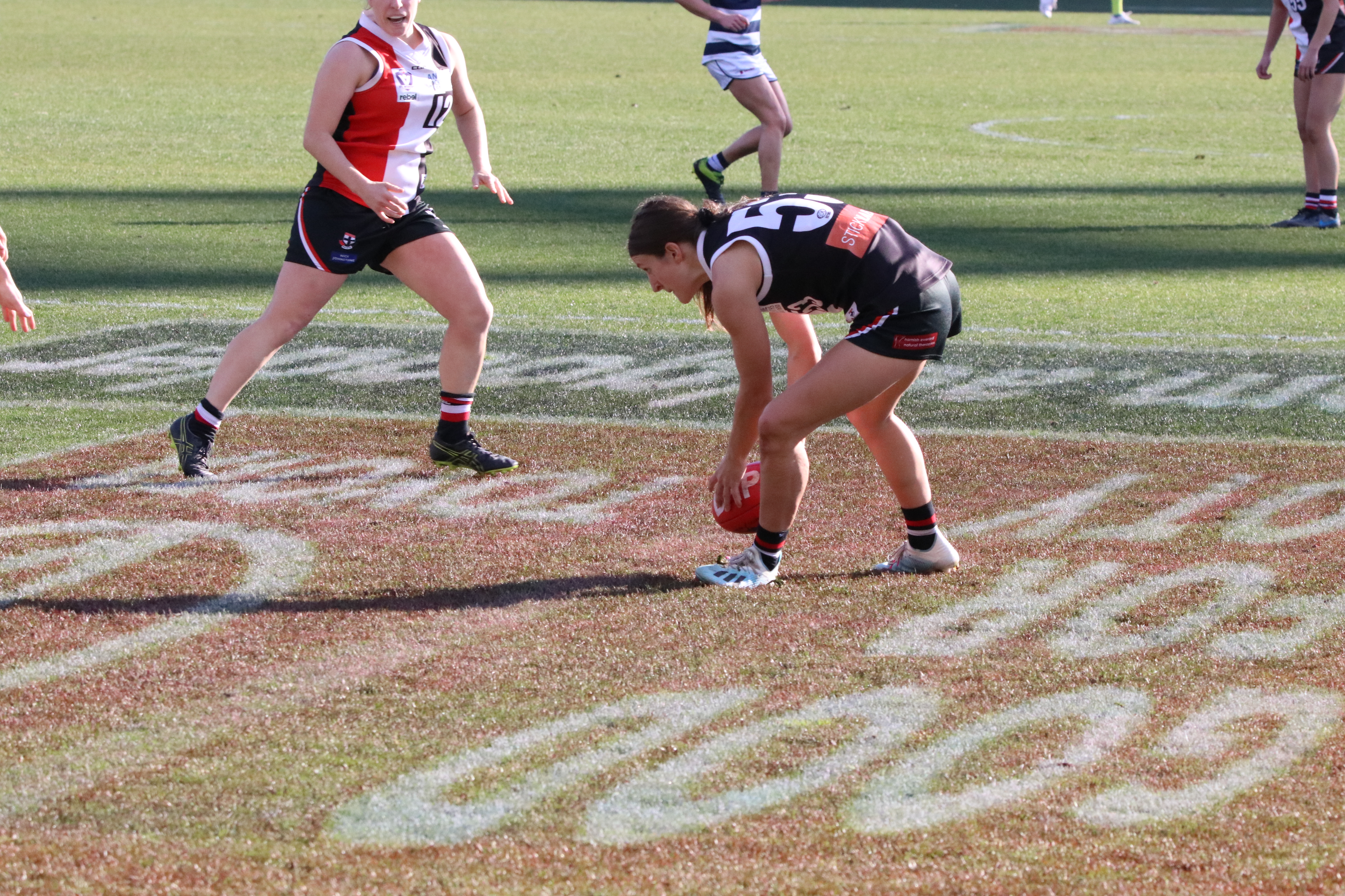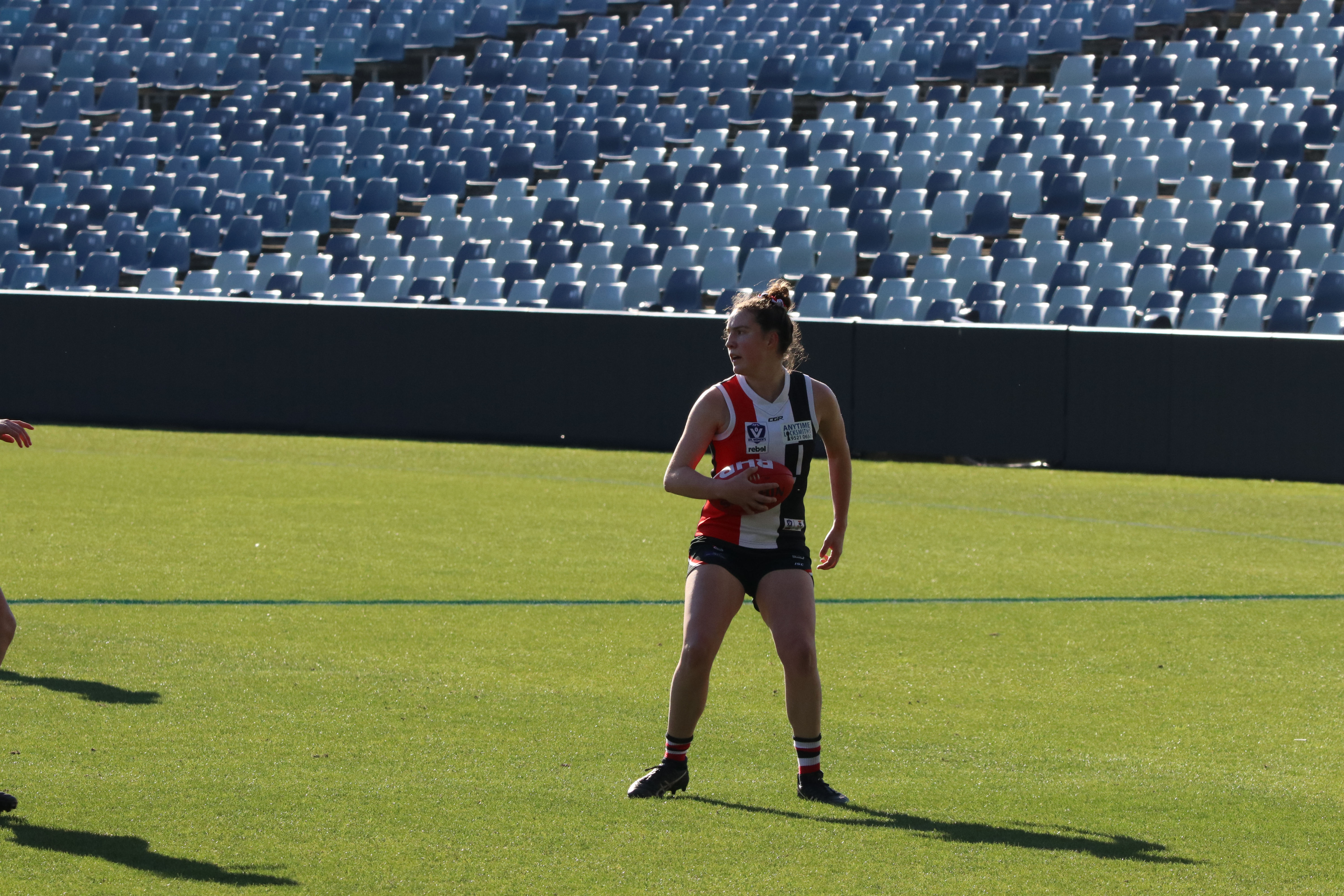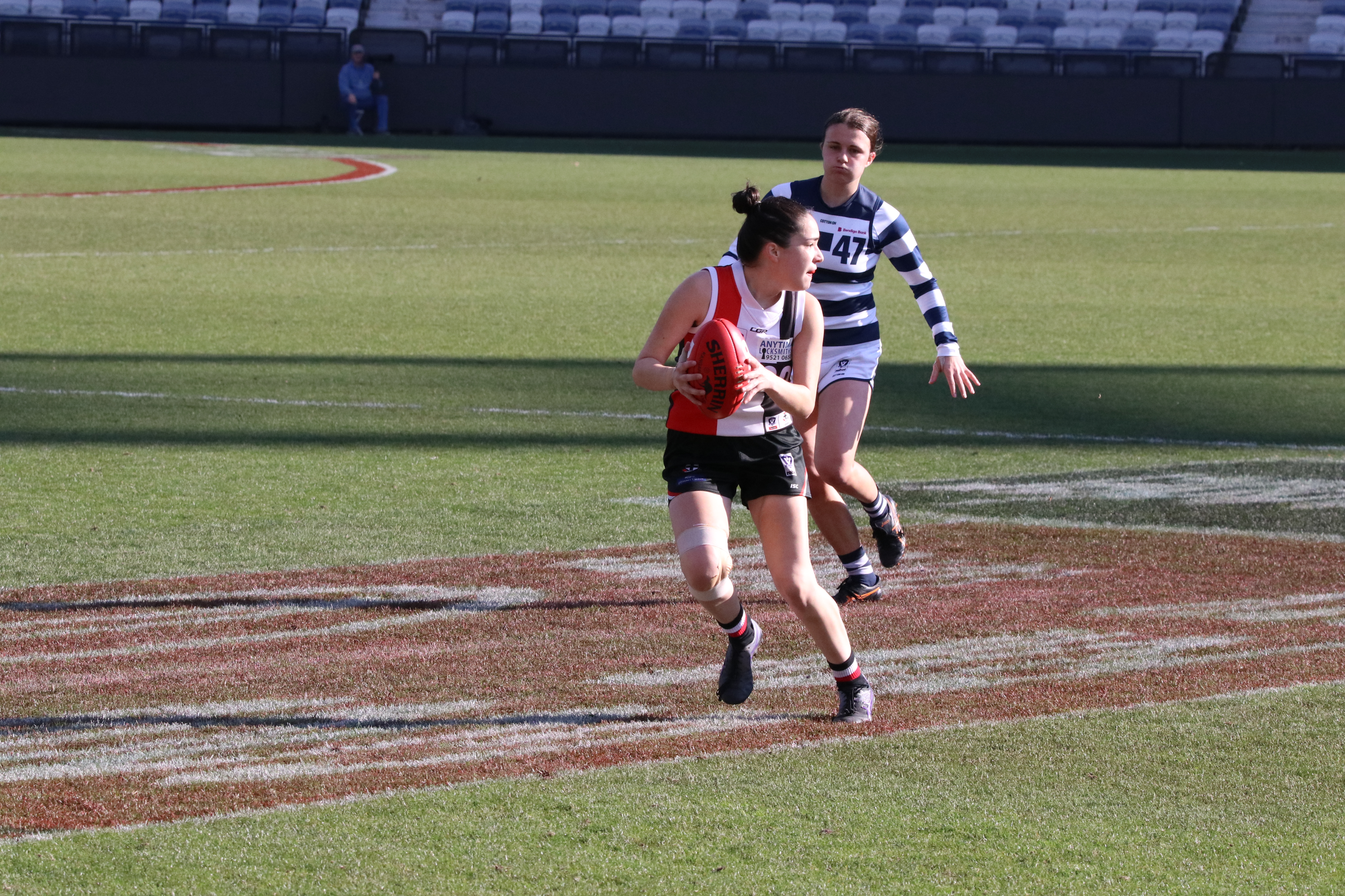 A free kick deep in the pocket gave Jess Matin an opportunity to score the Saints first major of the afternoon — and she didn’t disappoint — playing on and slotting the goal from an acute angle.