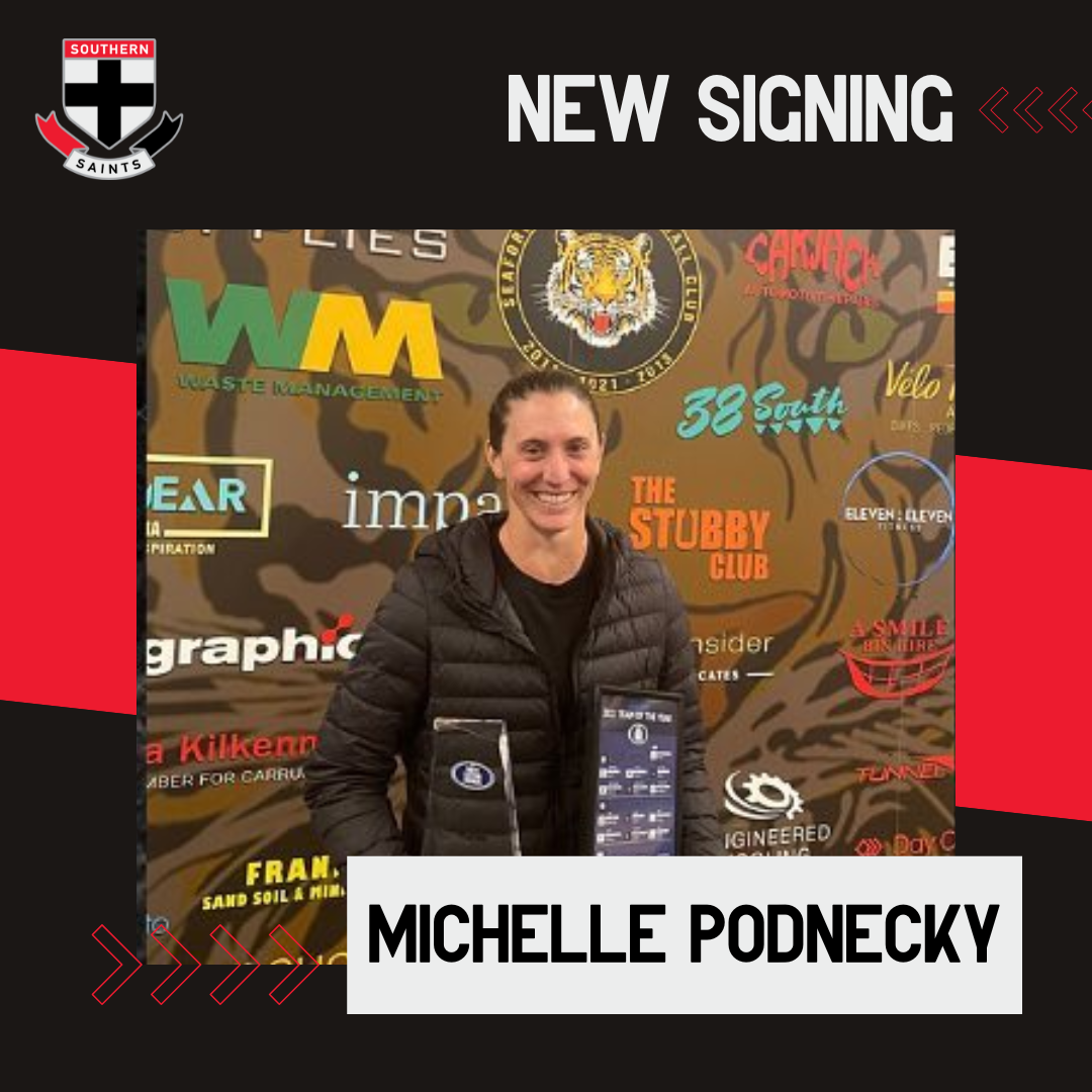 Podnecky joins us from Seaford where she was adjudged best on ground by the umpires in their 2022 South Eastern Women’s Football Premier Division Grand Final win against Coburg. She was also awarded the Premier Division Most Valuable Player at the South Eastern Women's Football awards night last season.