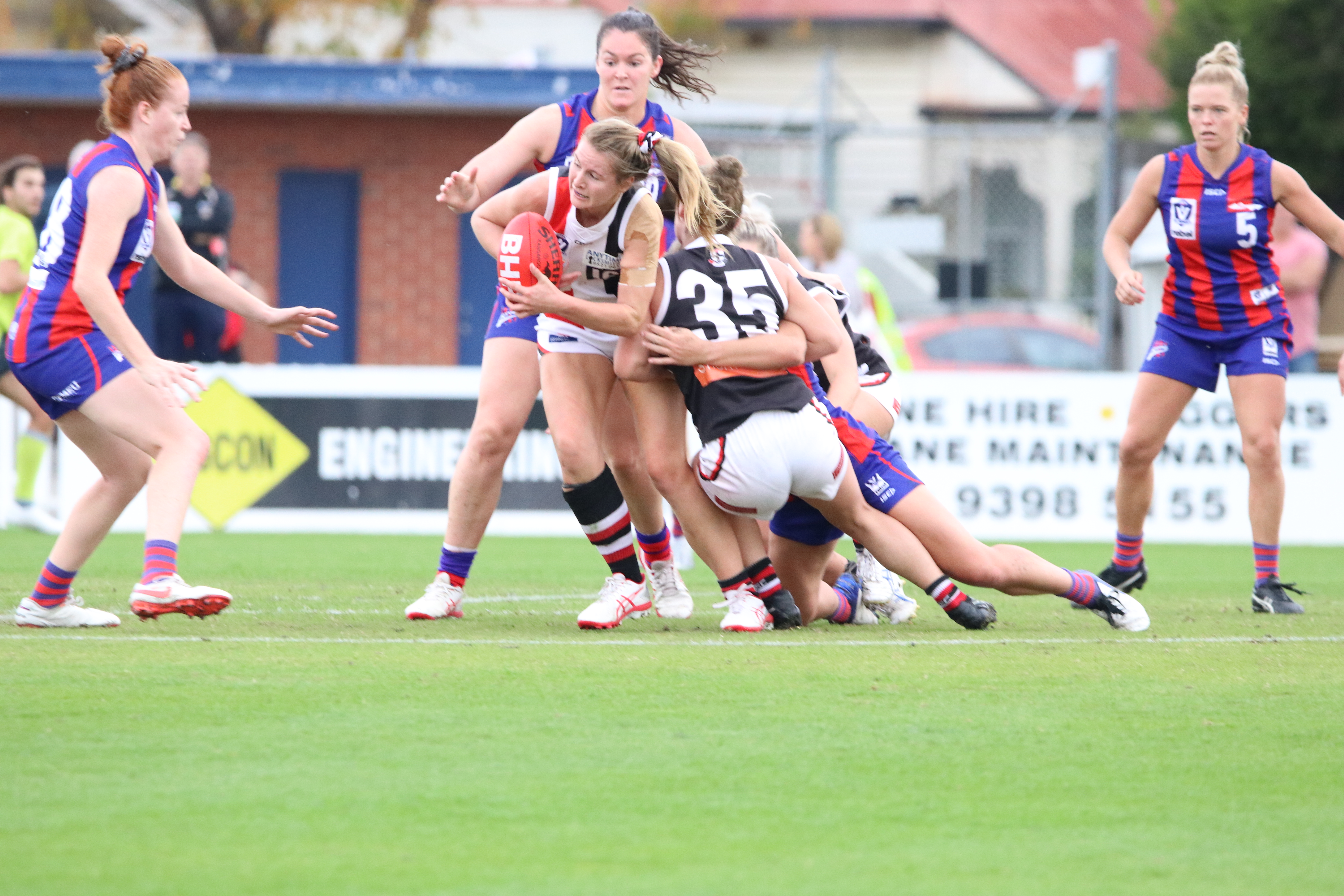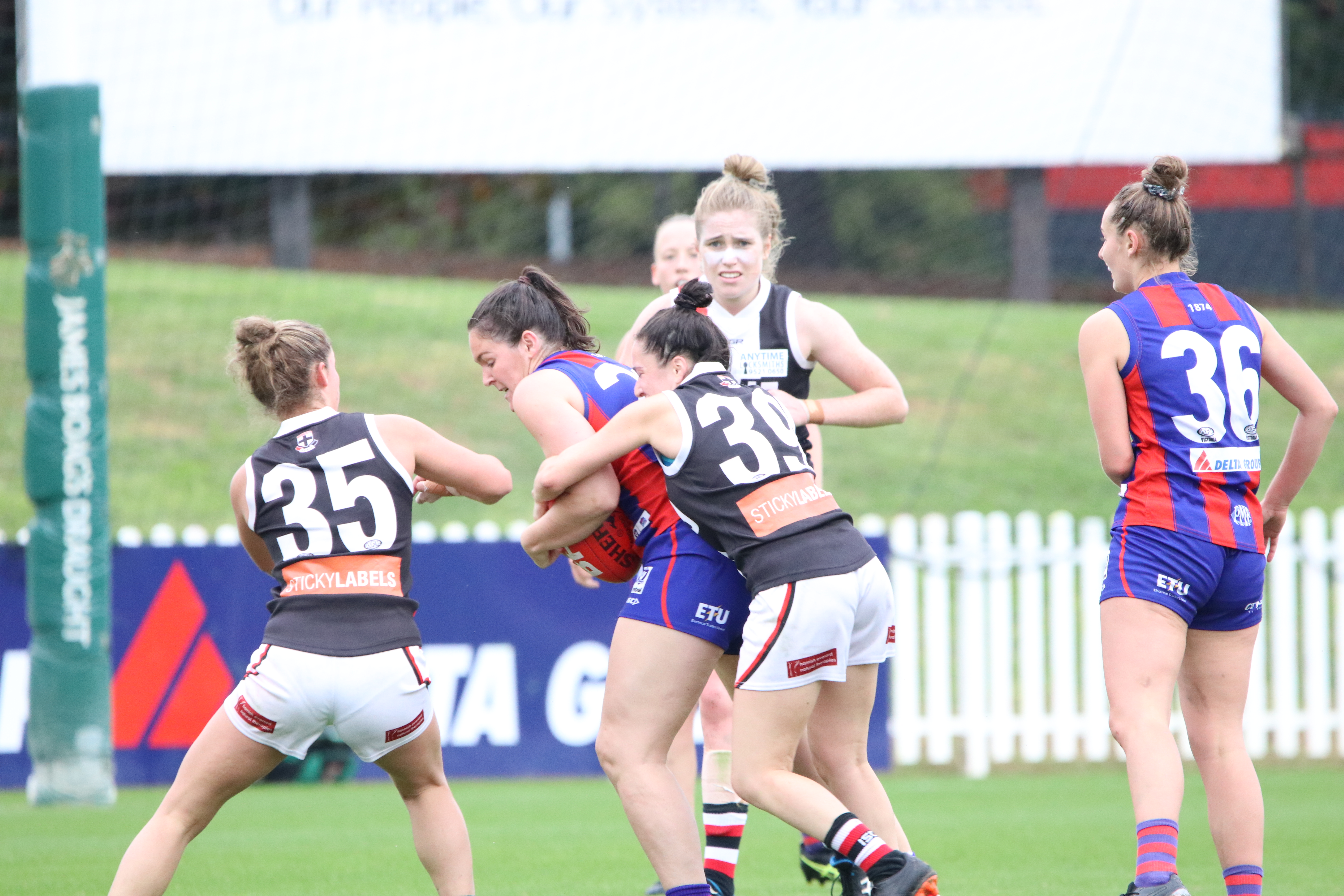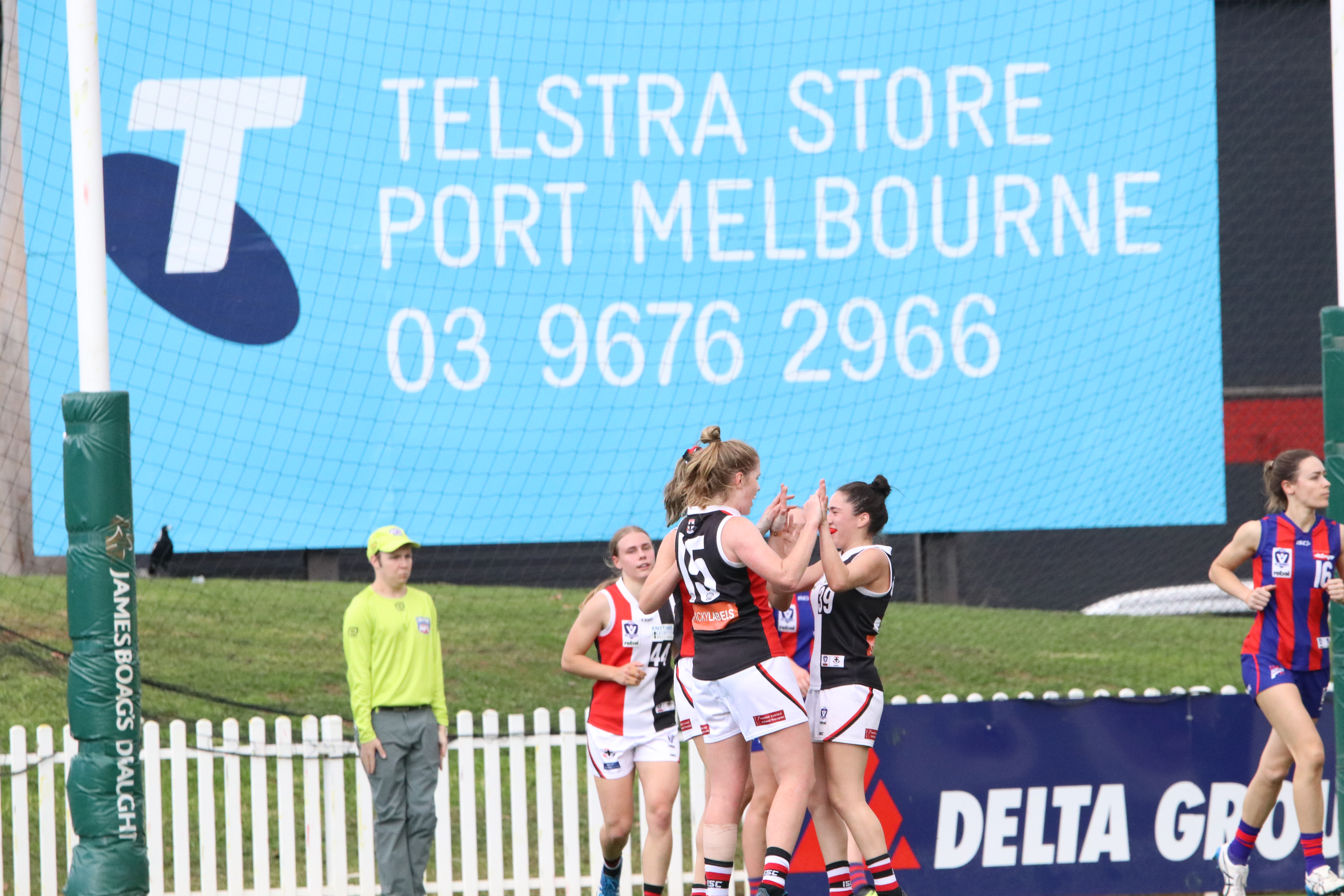 The Saints forward pressure was on show early, with several bone crunching tackles preventing Port Melbourne from exiting the back half.
