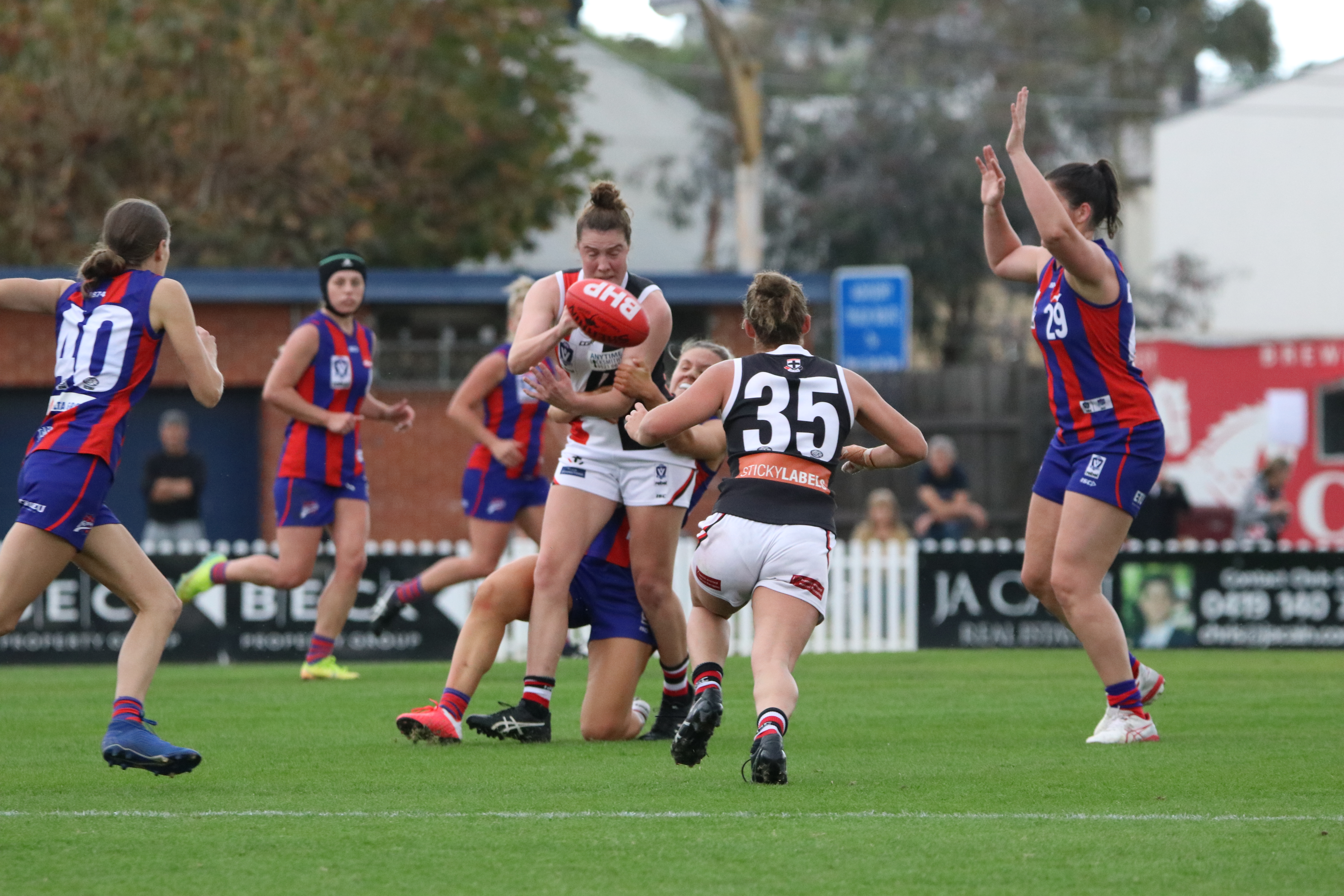 The Borough tried to apply some pressure of their own with several repeat inside 50s, but were stopped by an inspirational Alexandra Hynes who laid a brilliant rundown tackle close to goal.