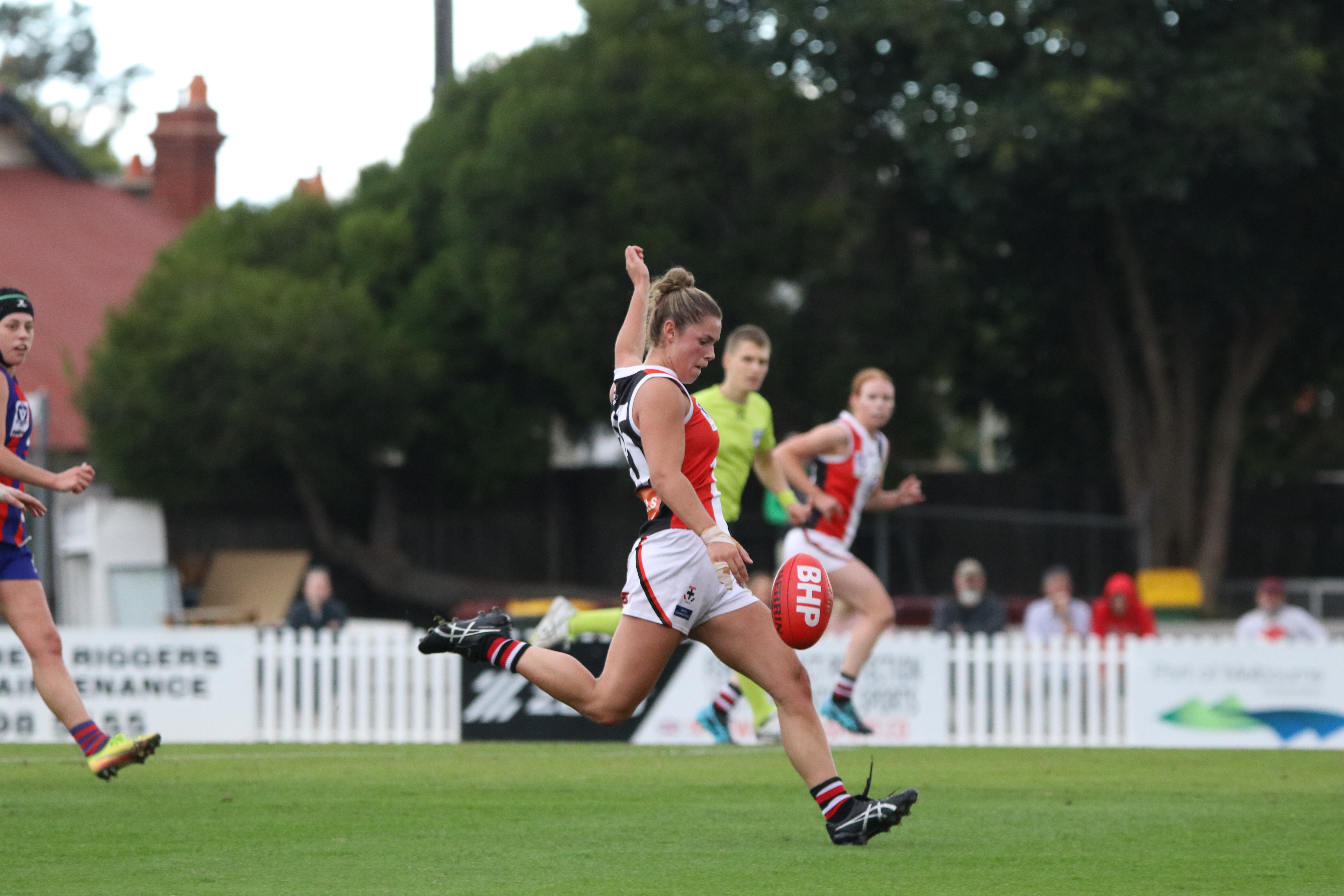 The breakthrough came from Tahlia Meyer, who soccered the ball off the ground in the goal square to kick the Saints' first major of the match.