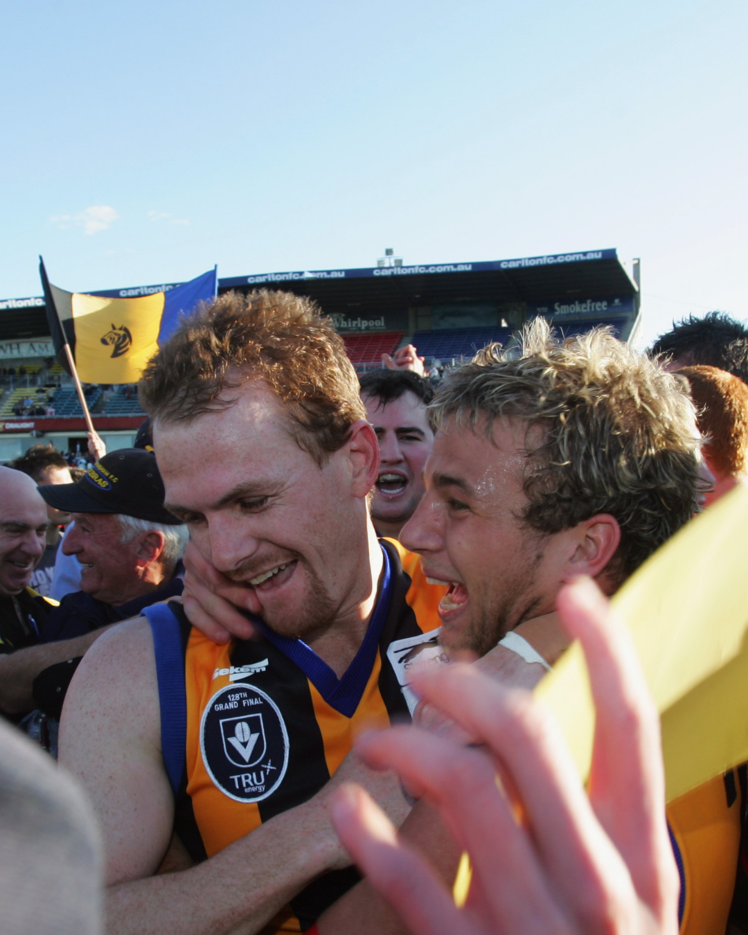 For the first half of the 2005 Grand Final though, you couldn’t split the two sides. The Zebs’ defence had kept damaging key forwards Jade Rawlings and James Podsiadly at bay, keeping the Tigers as a team to just four goals. But Sandy hadn’t been able to capitalise at the other end themselves, and such as, it was tied 30-30 at the main break.