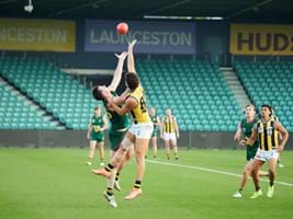 Tassie started to get their hands on the ball, but Liam Purcell took two intercept marks in back-to-back plays to ensure they didn’t score.