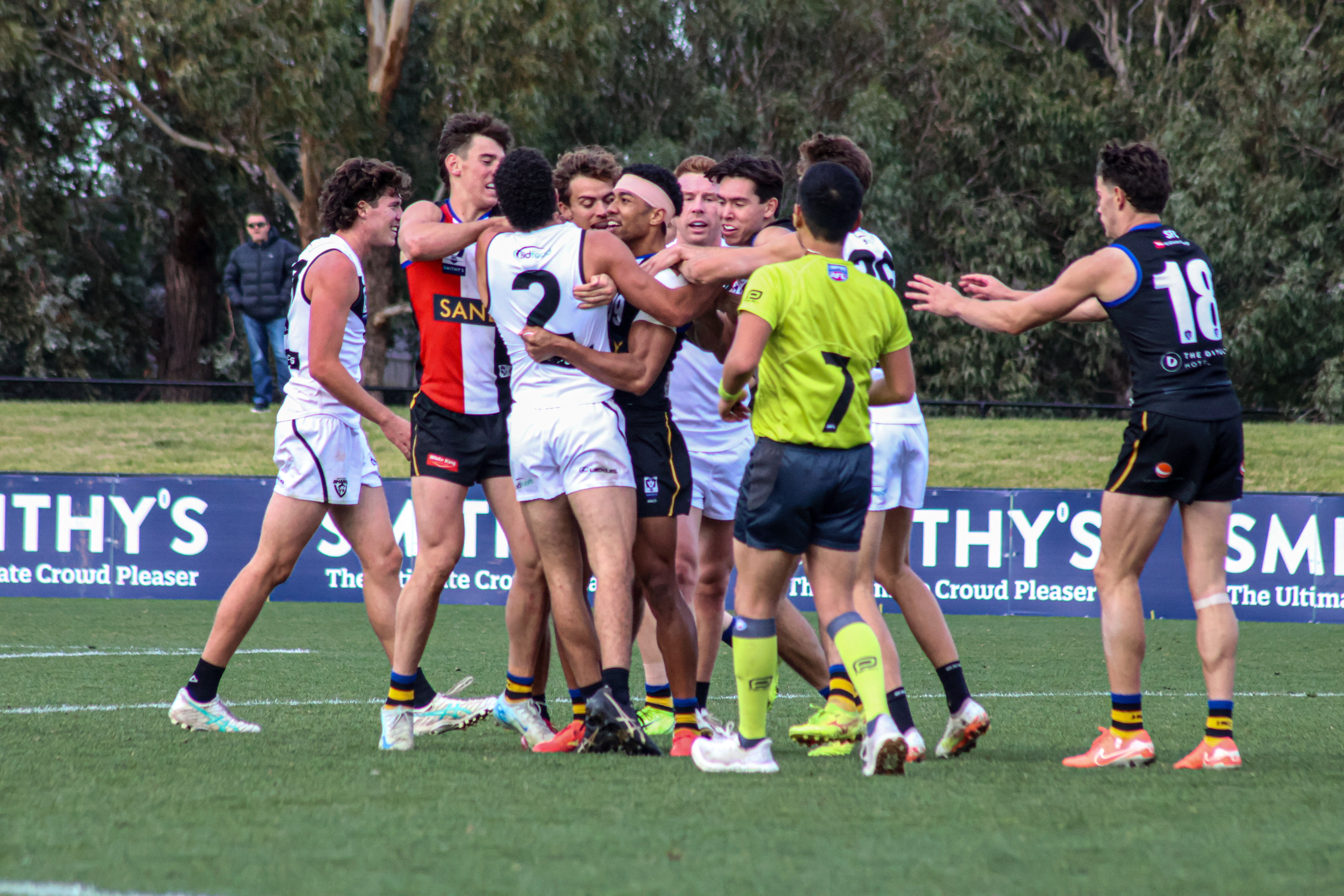 Tensions flared with a scuffle late in the quarter, but it was Southport who held the upper hand, heading into the first break with a 29-point lead