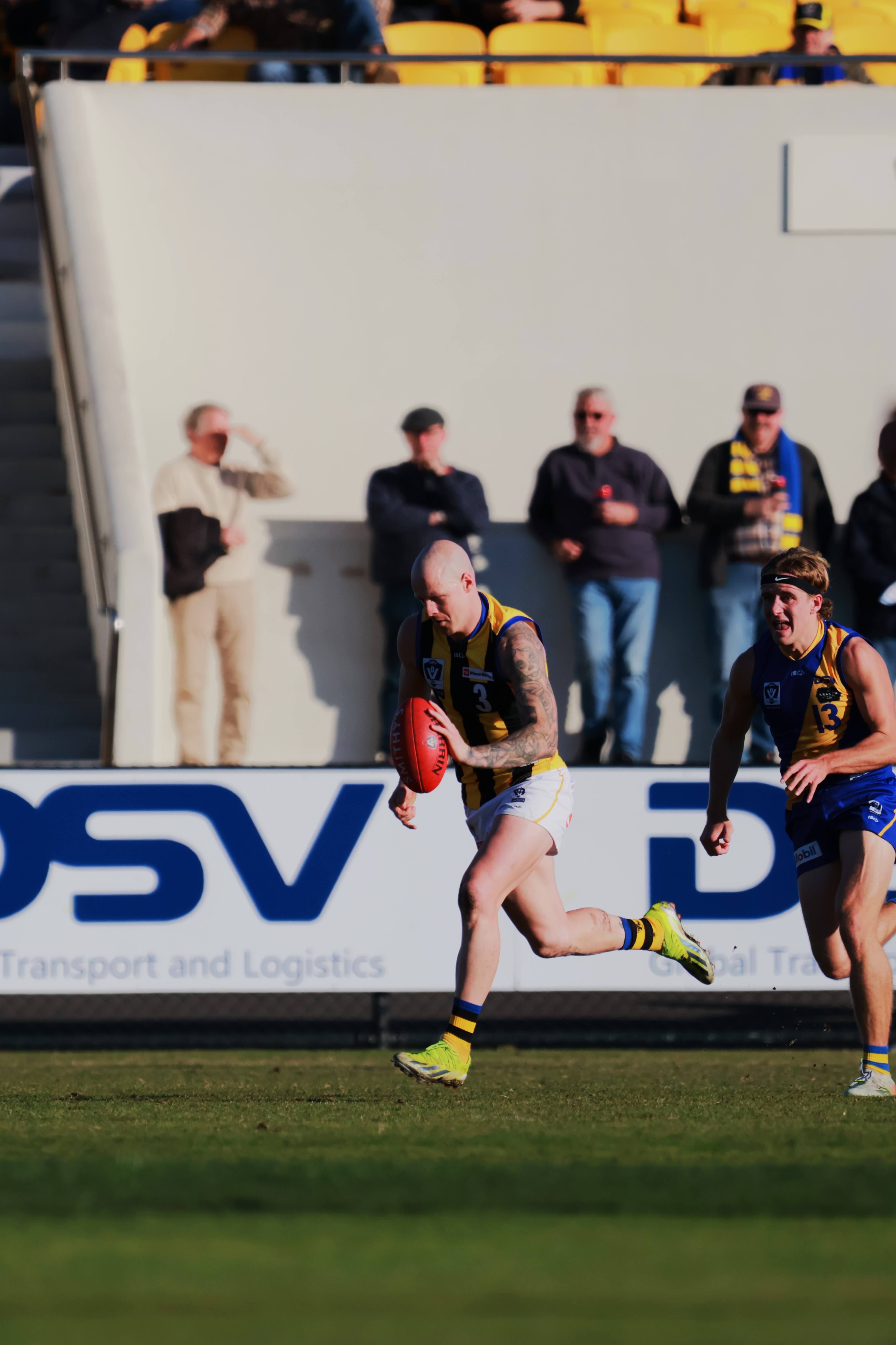 The second quarter turned into a grind, with Williamstown gaining the upper hand around the ball and pinning us deep in defence. We dug deep, none more so than inclusion Jez Rigoni (16 disposals, eight marks), who floated back to take a gutsy intercept mark that launched our best chain of the term, giving us a chance to push forward. Dodson - proving near-unstoppable in the air - kicked his third for the day, his contested marking a clear standout. From there, it was a battle of defences as both backlines held firm and the midfield contest became a fierce tug-of-war. We headed into the long break 28 points down, but the belief in the rooms said it all - this contest was far from over.