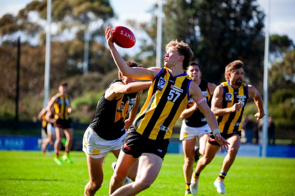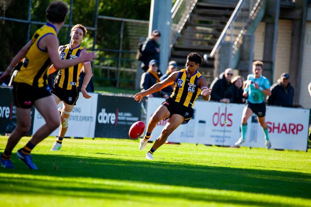 To end the period, Werribee had started to have a bit of a purple patch, but back-to-back intercept marks by James Barrat ensured the Tigers didn’t end the half with a goal.