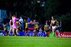 The last play of the day saw Hugh Boxshall work some magic in a tight space as he gathered the ball and, despite being in the middle of several Tigers, snapped through a goal.
